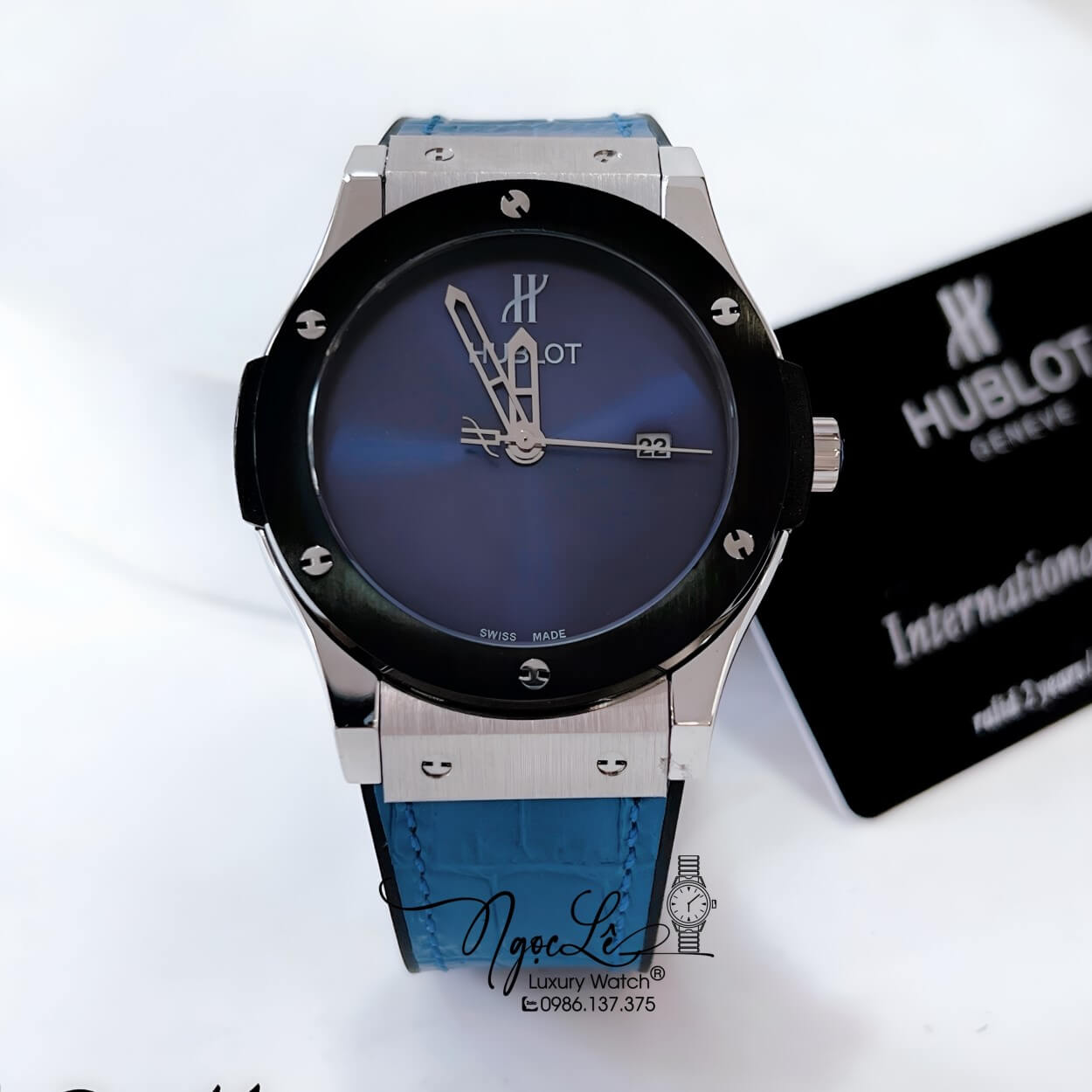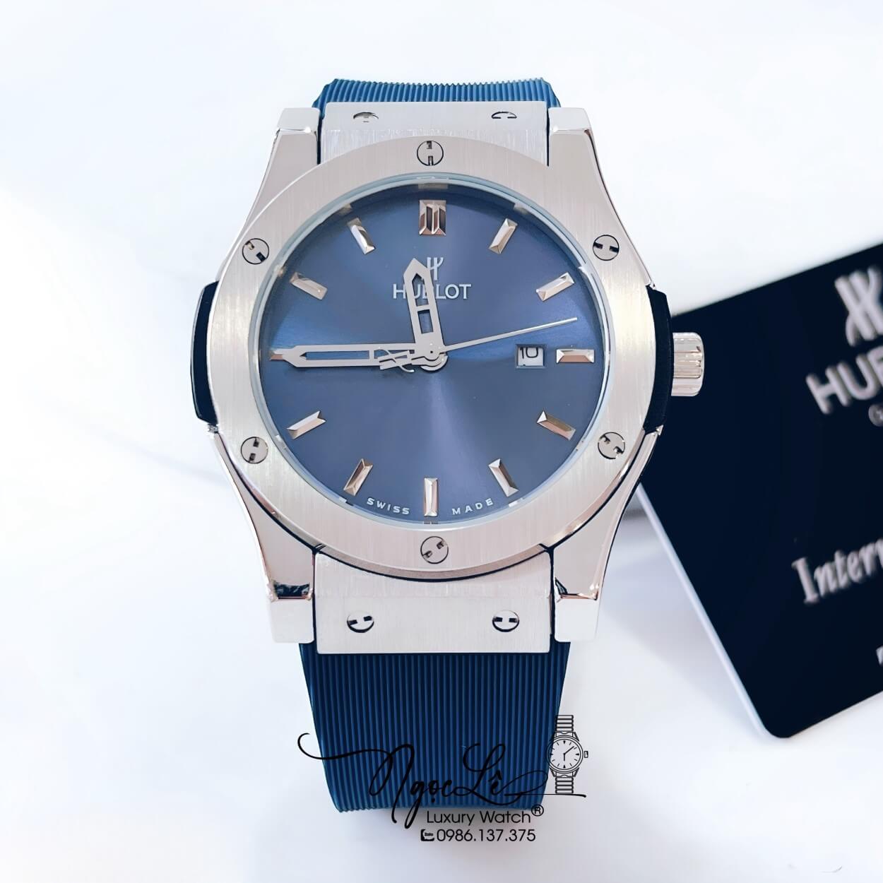 Đồng Hồ Hublot Classic Fusion Nam Máy Pin Dây Da Silicon Xanh Navy Vỏ Bạc Size 42mm