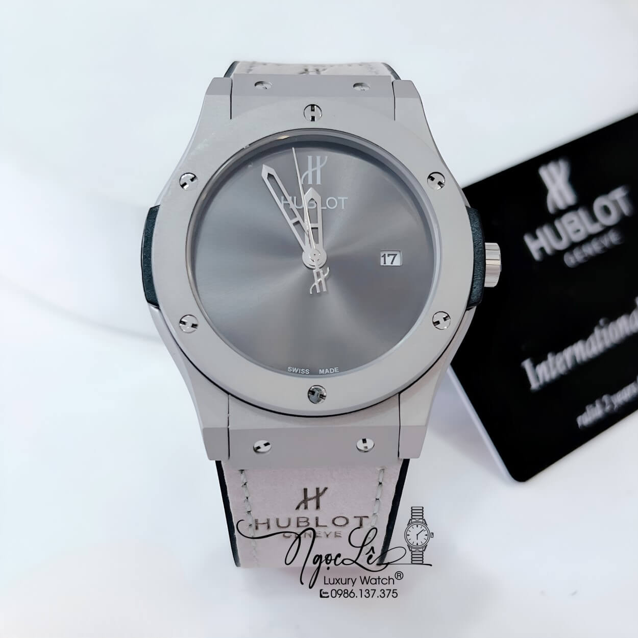 Đồng Hồ Hublot Classic Fusion Nam Máy Pin Dây Da Silicon Xám Vỏ Thép Mờ Size 38mm