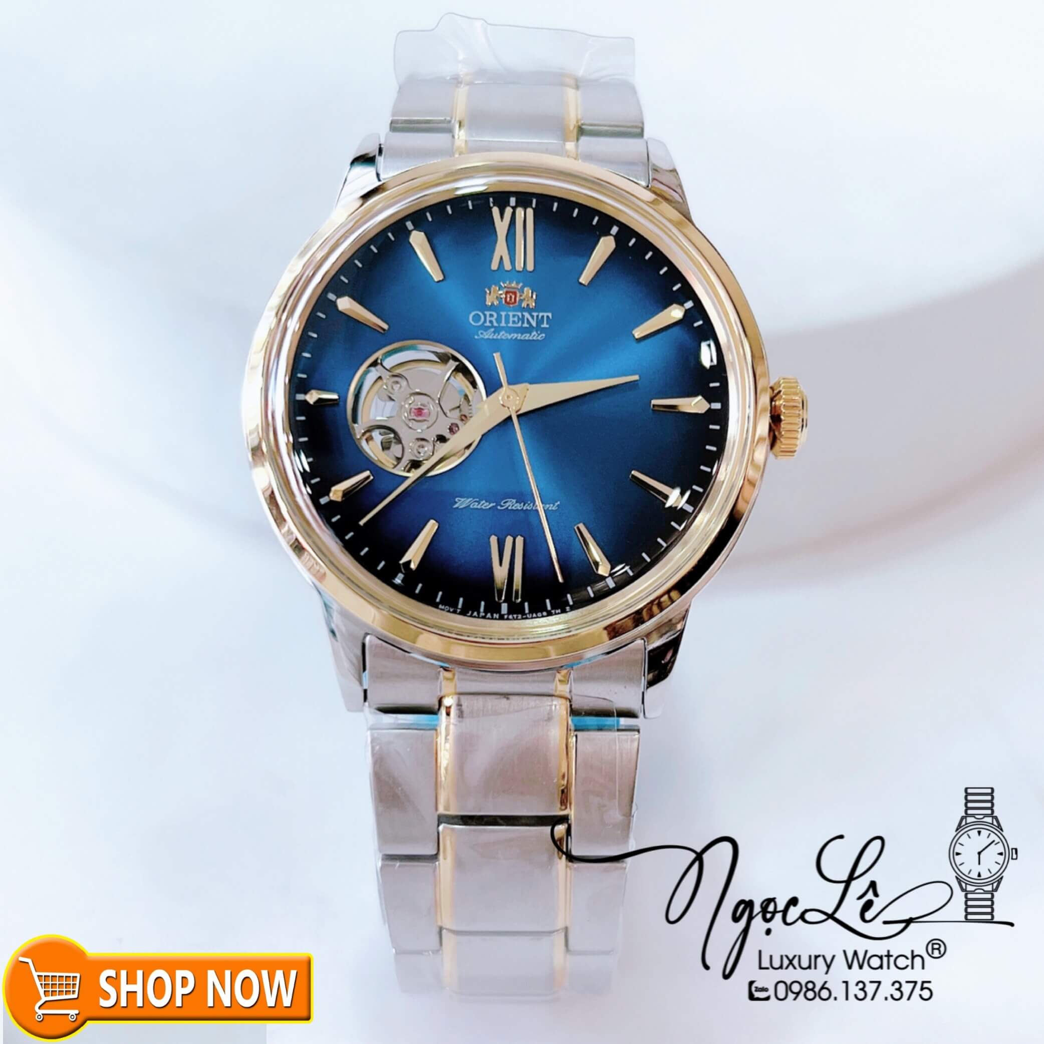 Đồng Hồ Nam Orient Tự Động Dây Kim Loại Màu Demi Vàng Mặt Ombre Xanh Dương Size 40mm