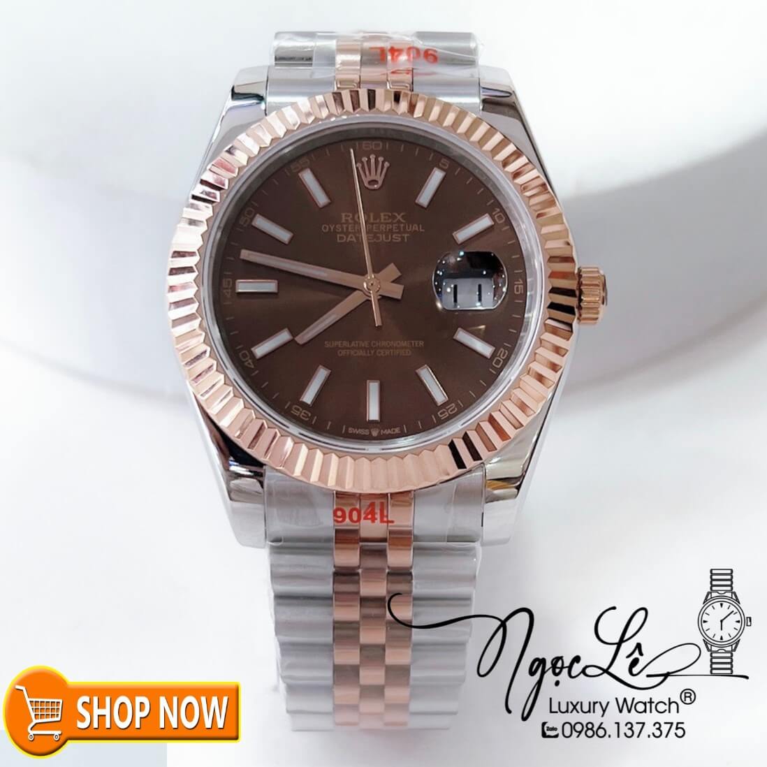 Đồng Hồ Rolex Datejust Automatic Nam Dây Demi Rose Mặt Nâu Size 41mm Phản Quang