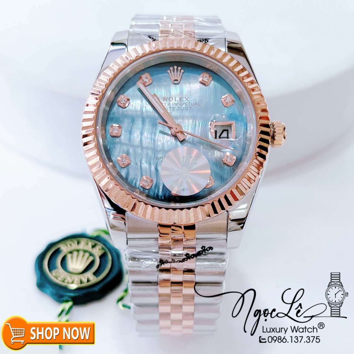 Đồng Hồ Rolex Datejust Nam Máy Cơ Tự Động Dây Demi Rose Mặt Xà Cừ Xanh Size 41mm