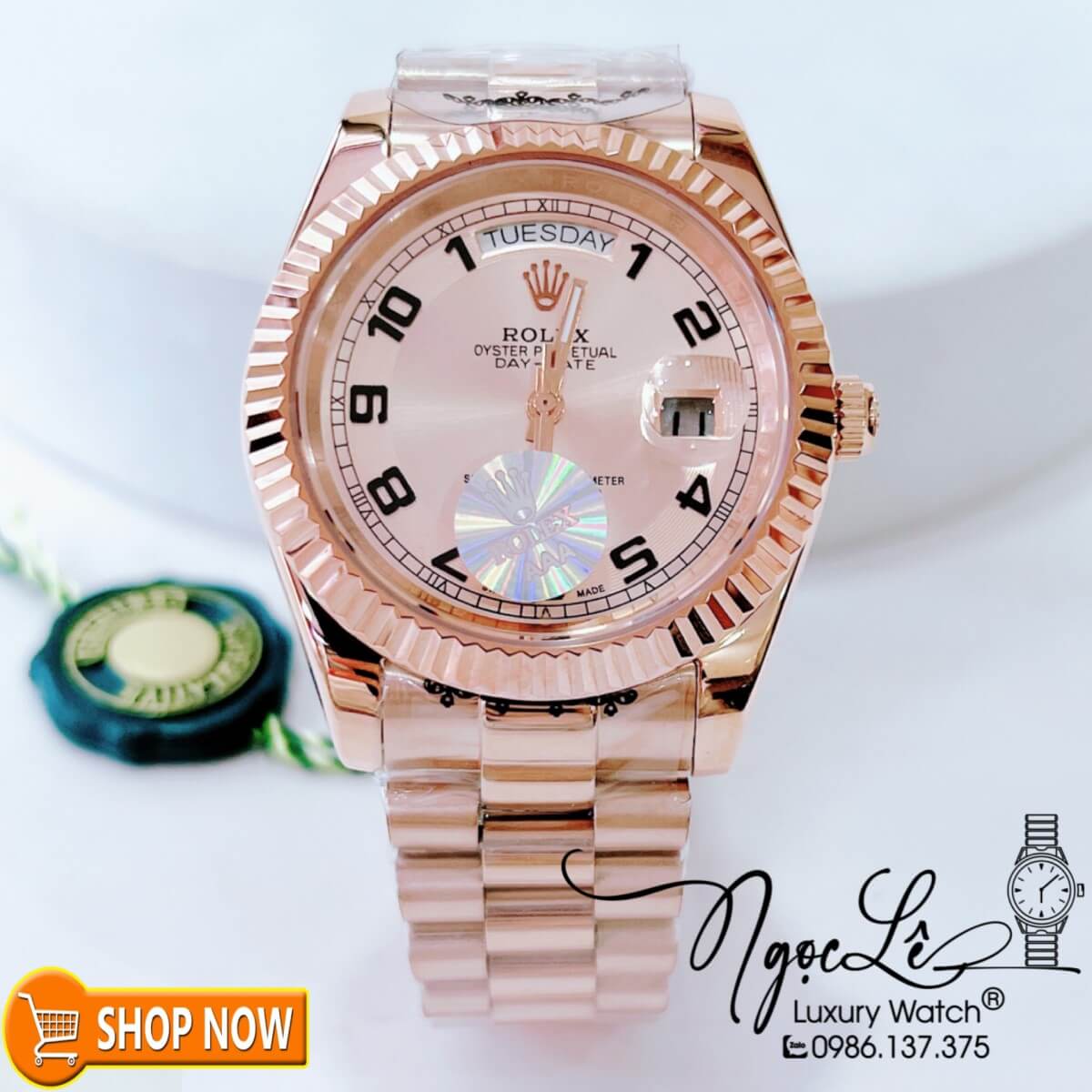Đồng Hồ Rolex Day-Date Nam Máy Cơ Tự Động Dây Vàng Hồng Size 41mm - Mặt Số Học Trò