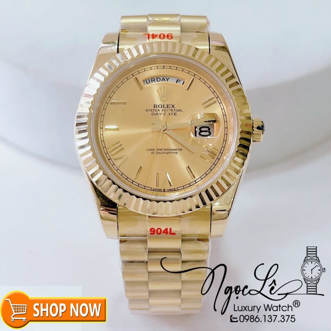 Đồng Hồ Rolex Day-Date Nam Máy Cơ Tự Động Dây Vàng Mặt Vàng Size 41mm