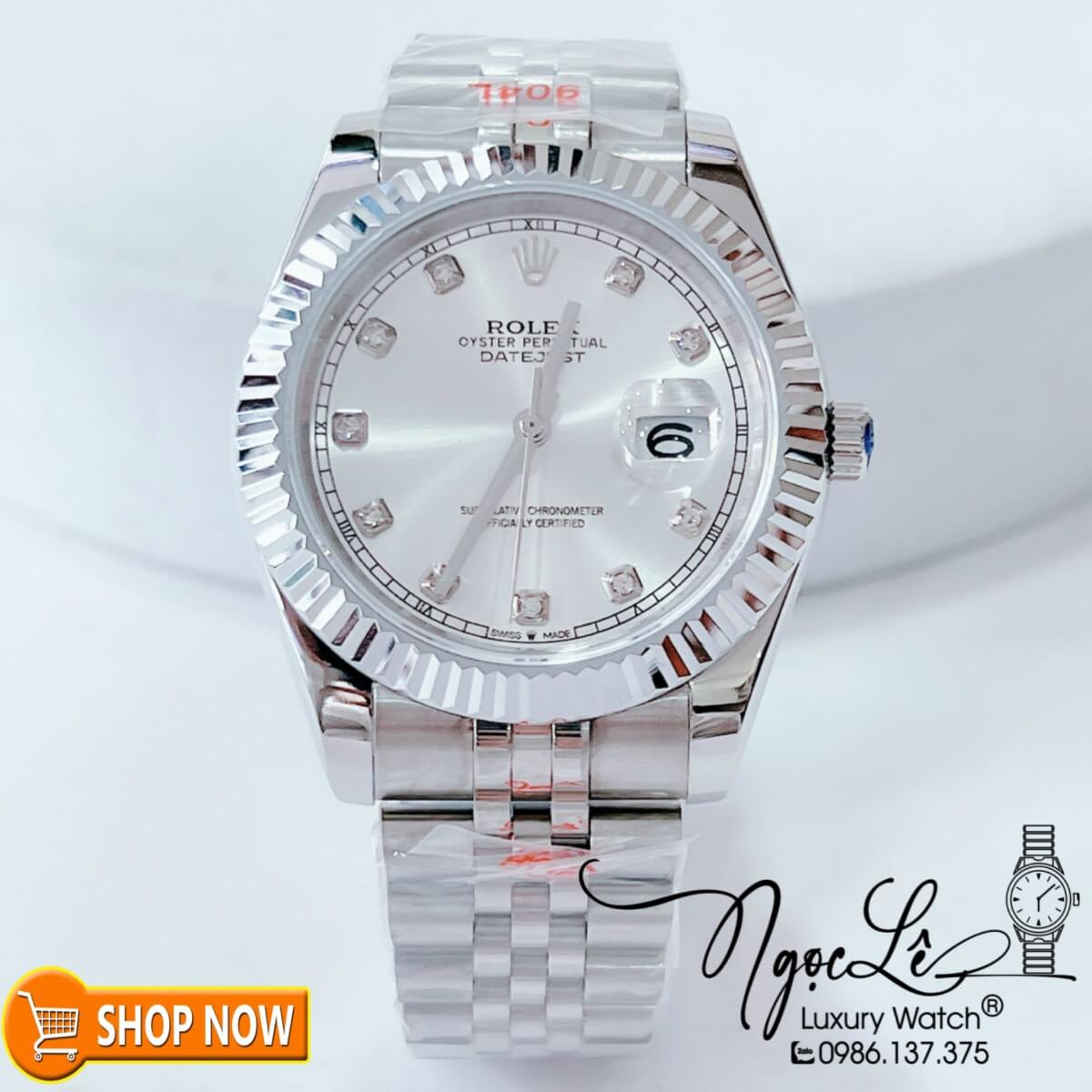 Đồng Hồ Rolex Datejust Nam Máy Cơ Tự Động Dây Bạc Mặt Trắng Size 41mm