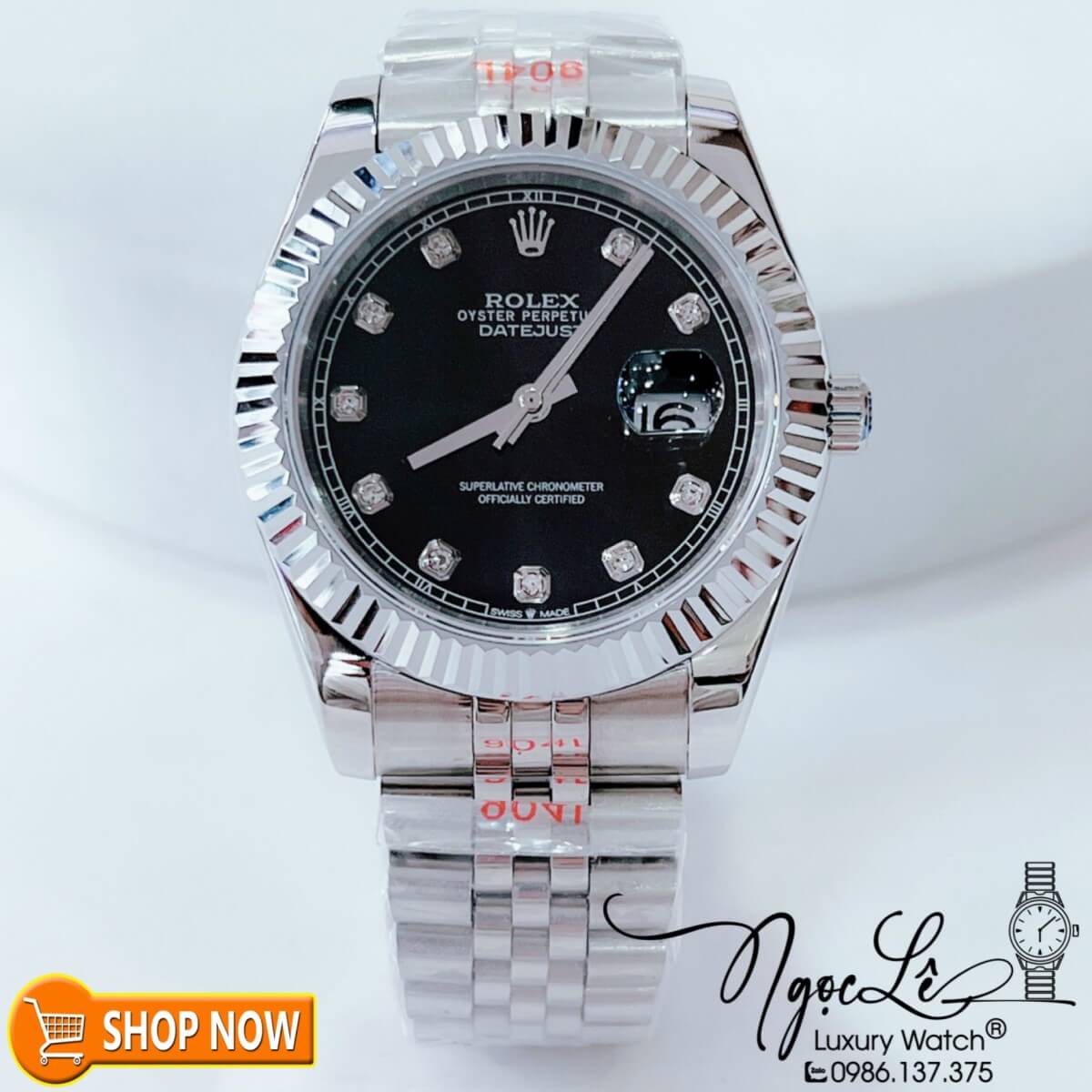 Đồng Hồ Rolex Datejust Nam Máy Cơ Tự Động Dây Bạc Mặt Đen Vi Tính Size 41mm