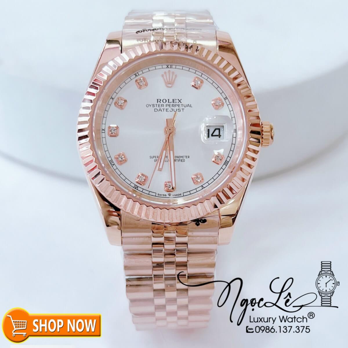 Đồng Hồ Rolex Datejust Nam Máy Cơ Tự Động Dây Vàng Hồng Mặt Trắng Size 41mm