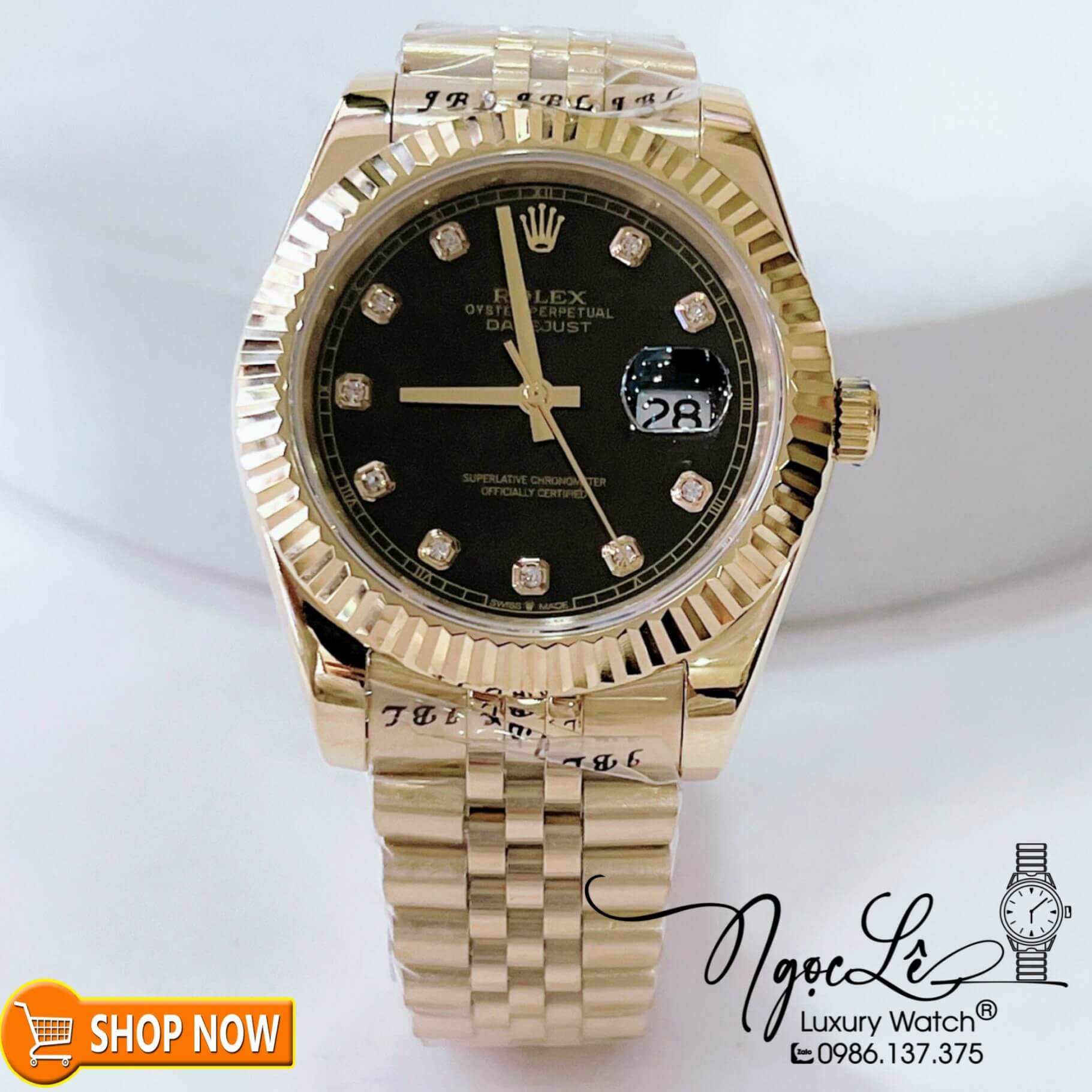 Đồng Hồ Rolex Datejust Nam Máy Cơ Tự Động Dây Vàng Mặt Đen Size 41mm