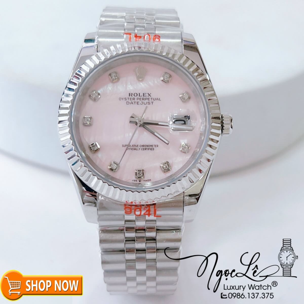 Đồng Hồ Rolex Datejust Nam Máy Cơ Tự Động Dây Bạc Mặt Xà Cừ Hồng Nhạt Size 41mm