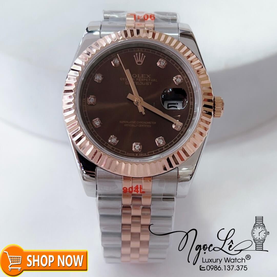 Đồng Hồ Rolex Datejust Nam Máy Cơ Tự Động Dây Demi Rose Mặt Nâu Size 41mm