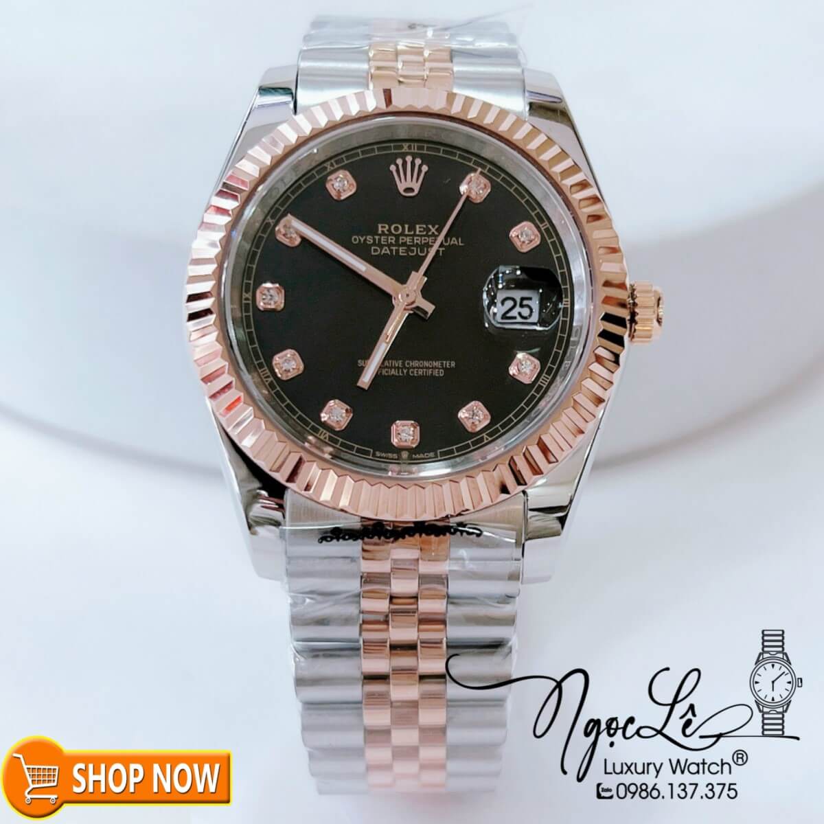 Đồng Hồ Rolex Datejust Nam Máy Cơ Tự Động Dây Demi Rose Mặt Đen Size 41mm