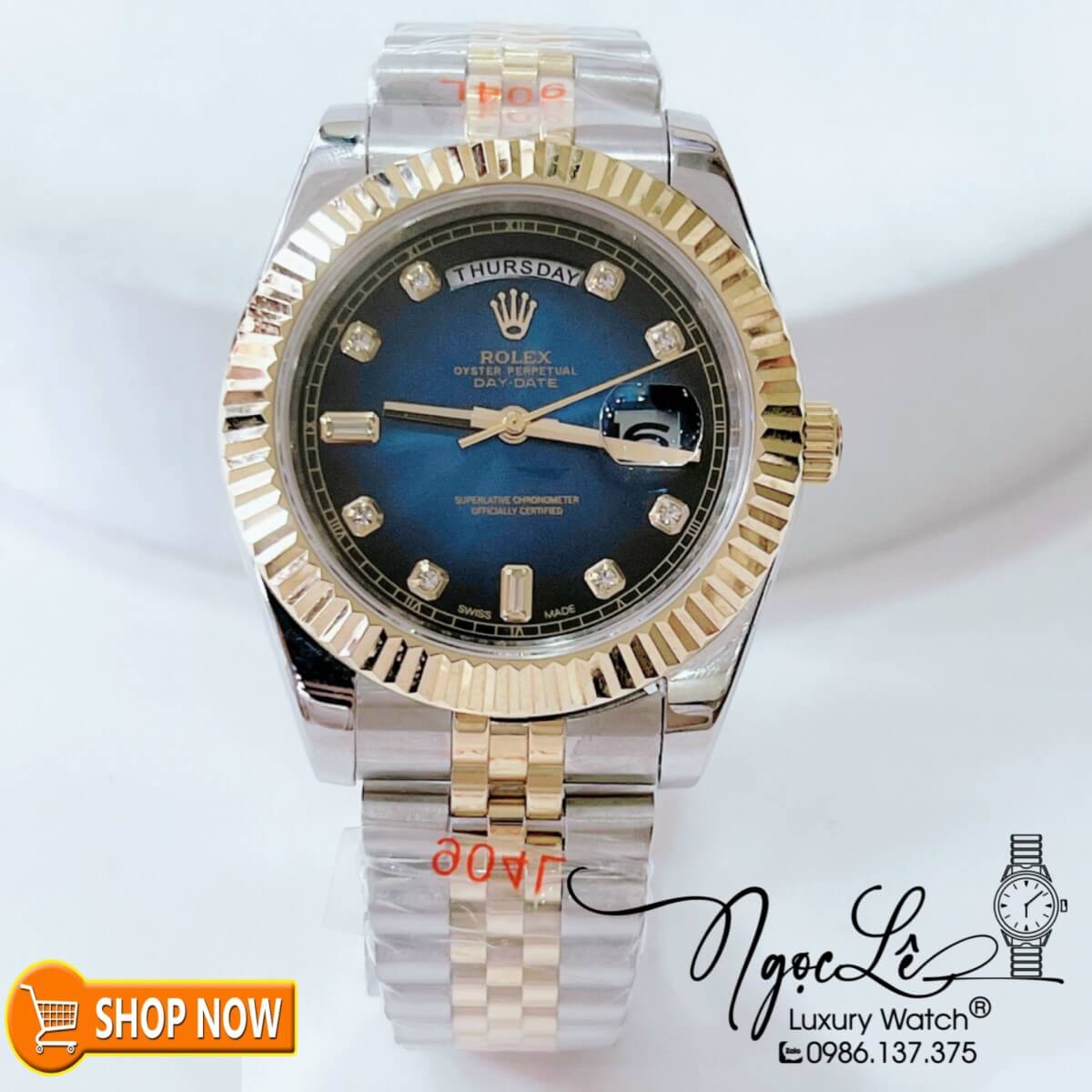 Đồng Hồ Rolex Day-Date Nam Máy Cơ Tự Động Dây Demi Vàng Mặt Ombre Xanh Size 41mm