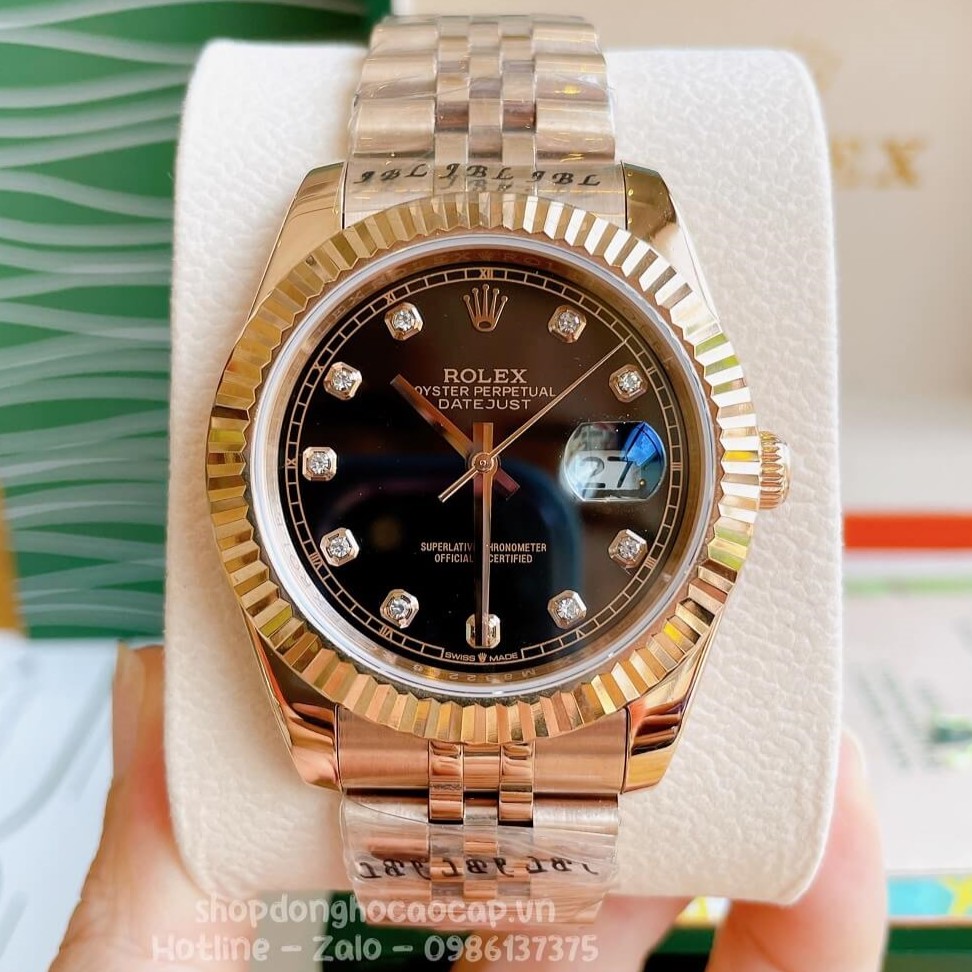 Đồng Hồ Rolex Datejust Cơ Tự Động Nam Màu Rose Mặt Đen 41mm