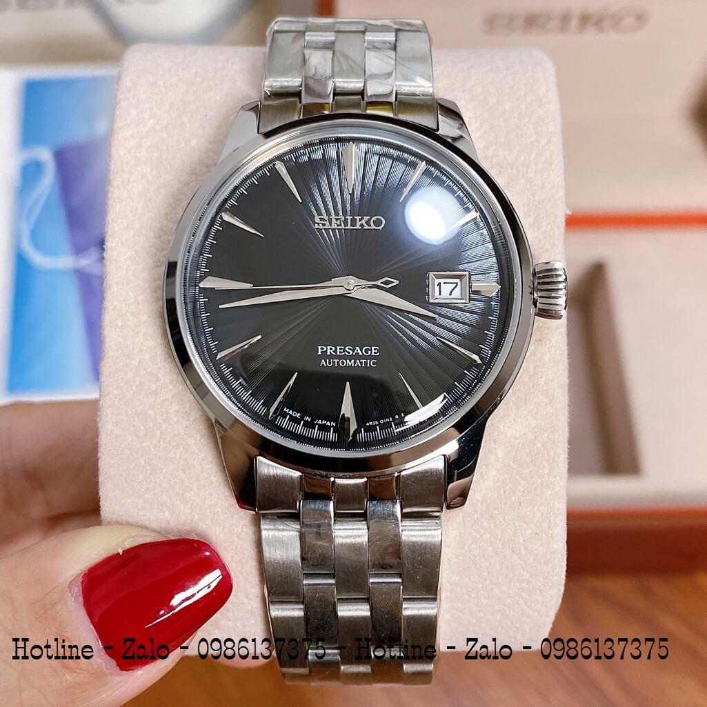 Đồng Hồ Nam Seiko Automatic Demi Bạc Mặt Đen 40mm