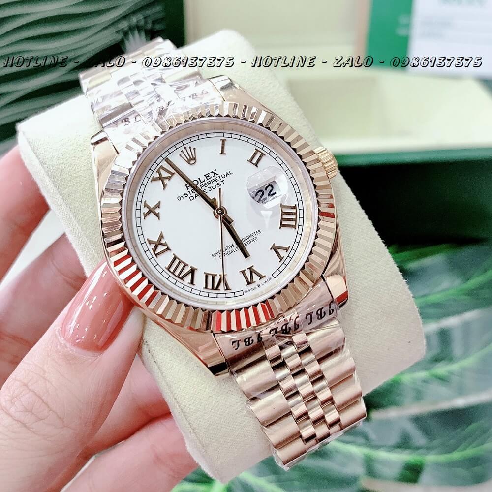 Đồng Hồ Nam Rolex Automatic Tự Động Vàng Trắng Mặt Số La Mã 41mm