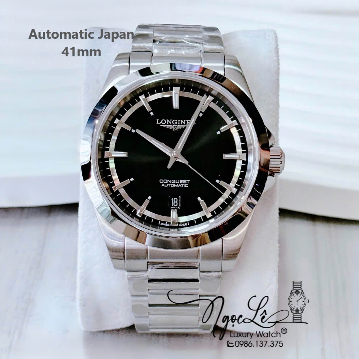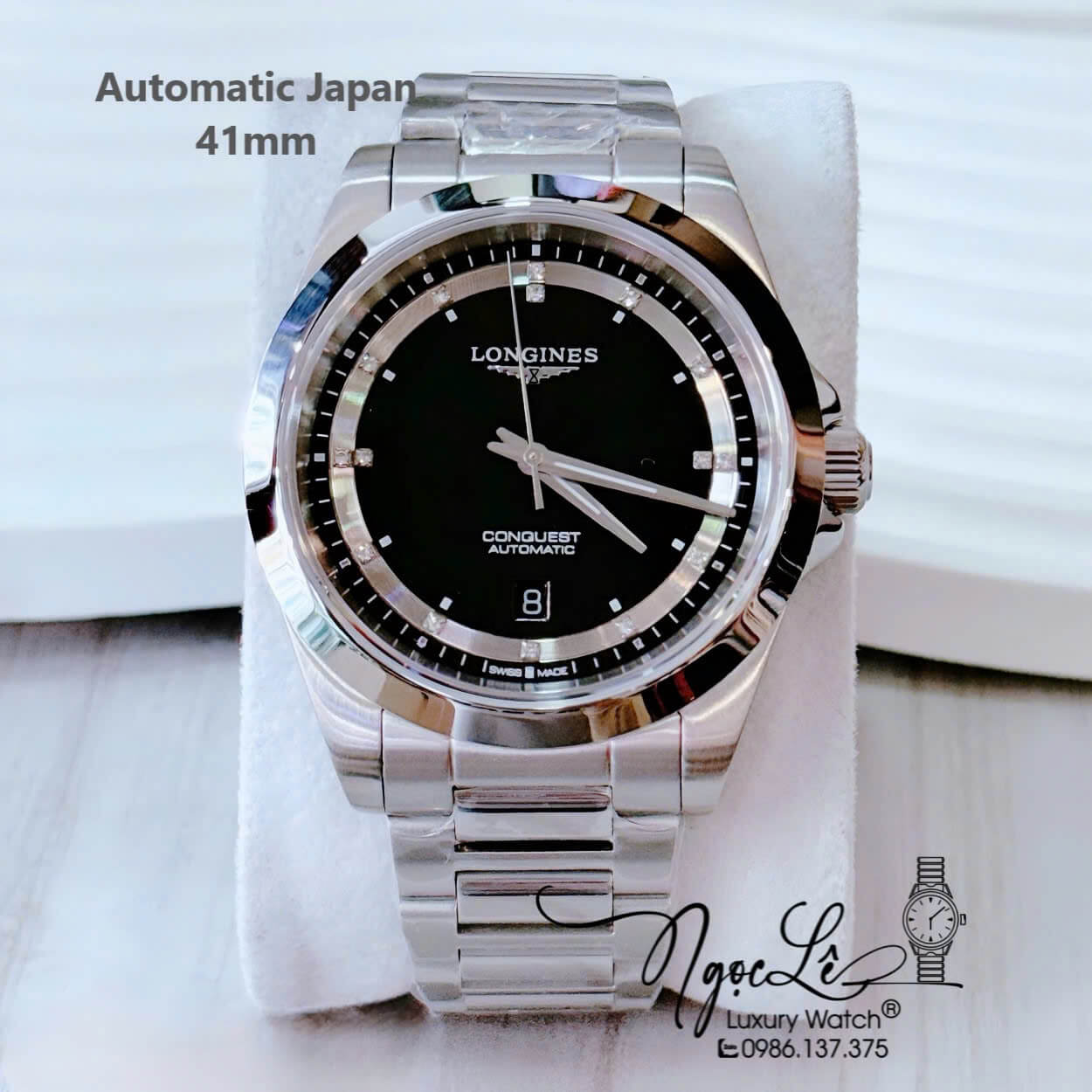 Đồng Hồ Nam Longines Conquest Tự Động Inox Sapphire Mặt Đen Silver 41mm