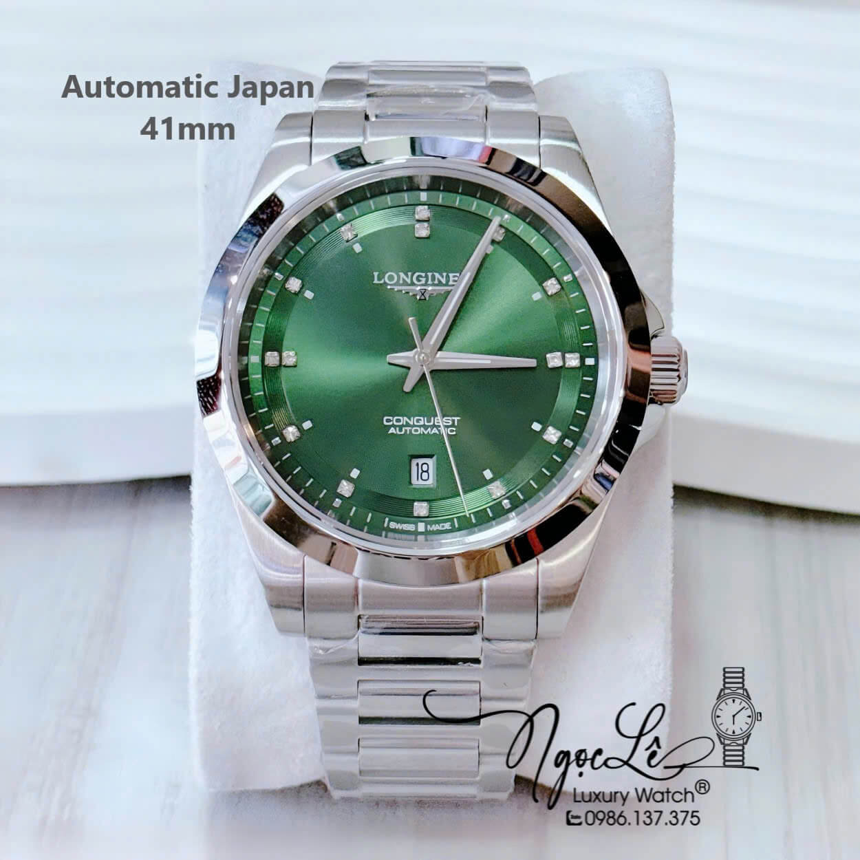 Đồng Hồ Nam Longines Conquest Tự Động Inox Sapphire Mặt Xanh Lá Silver 41mm