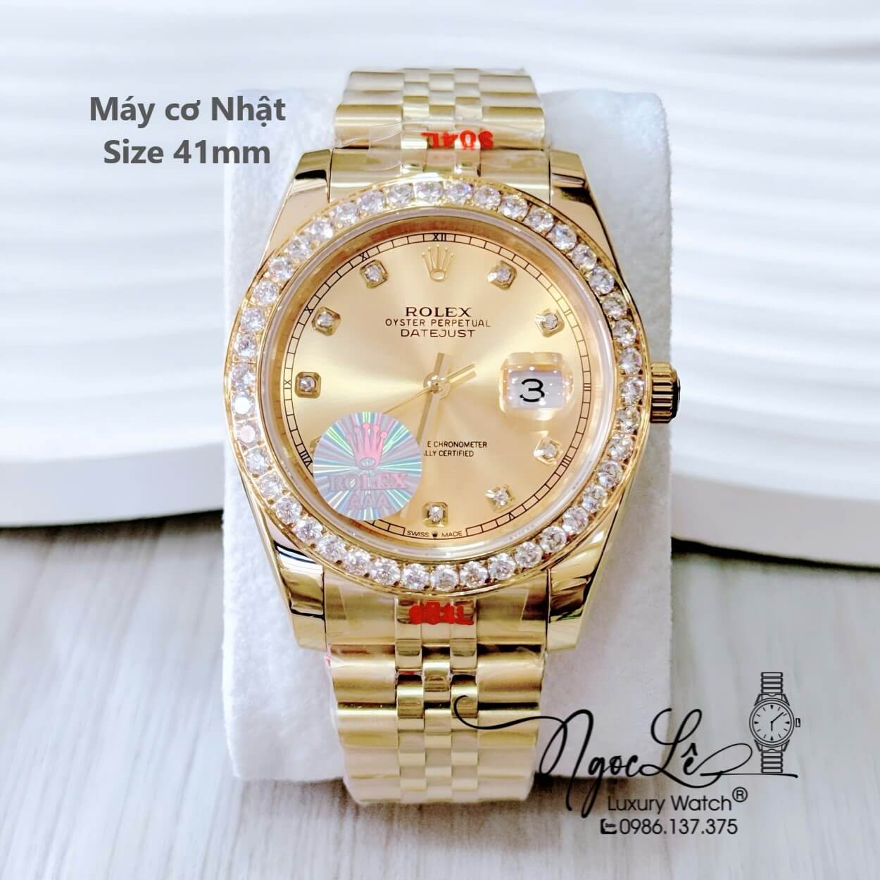 Đồng Hồ Nam Rolex Datejust Tự Động Dây Vàng Mặt Vàng Đính Đá Size 41mm
