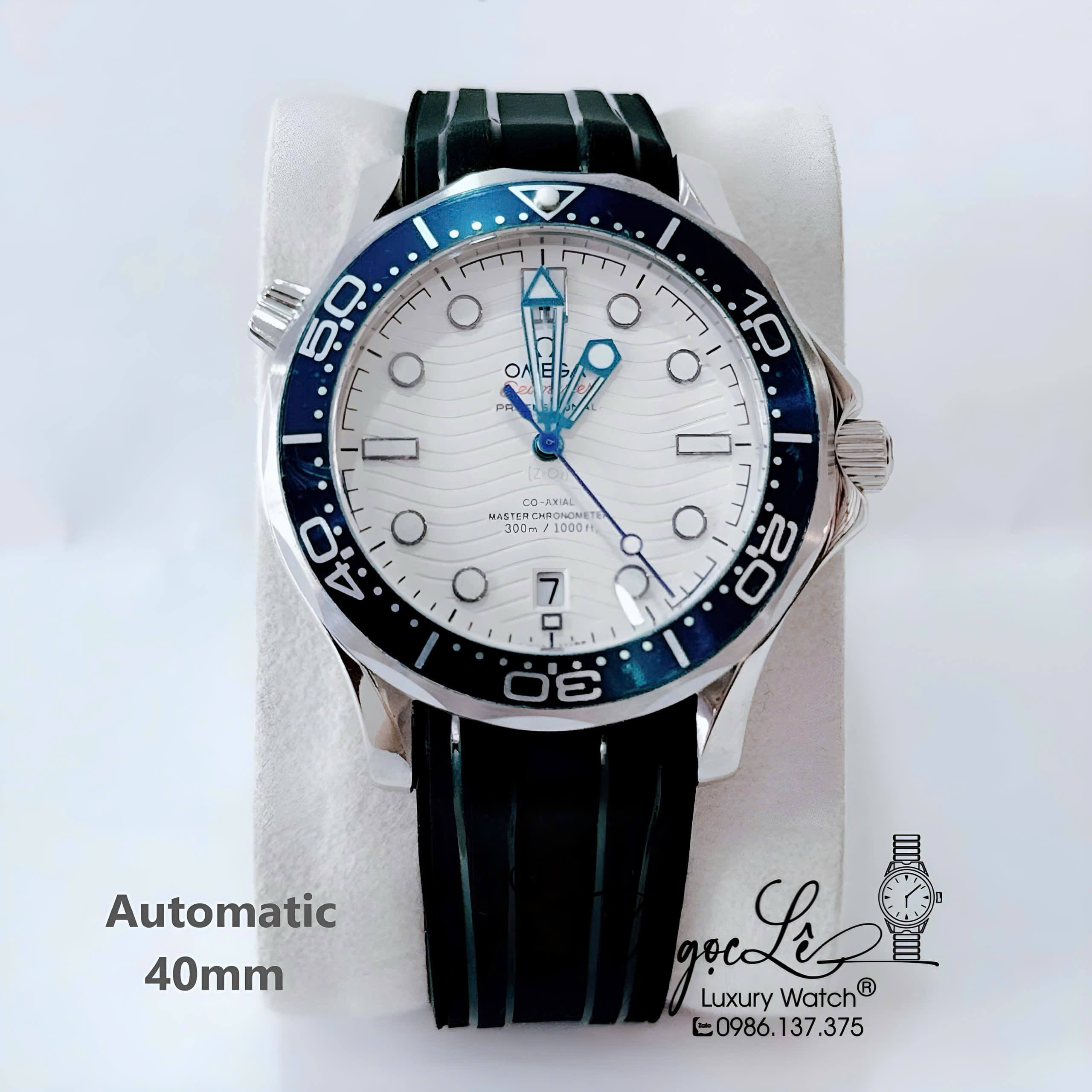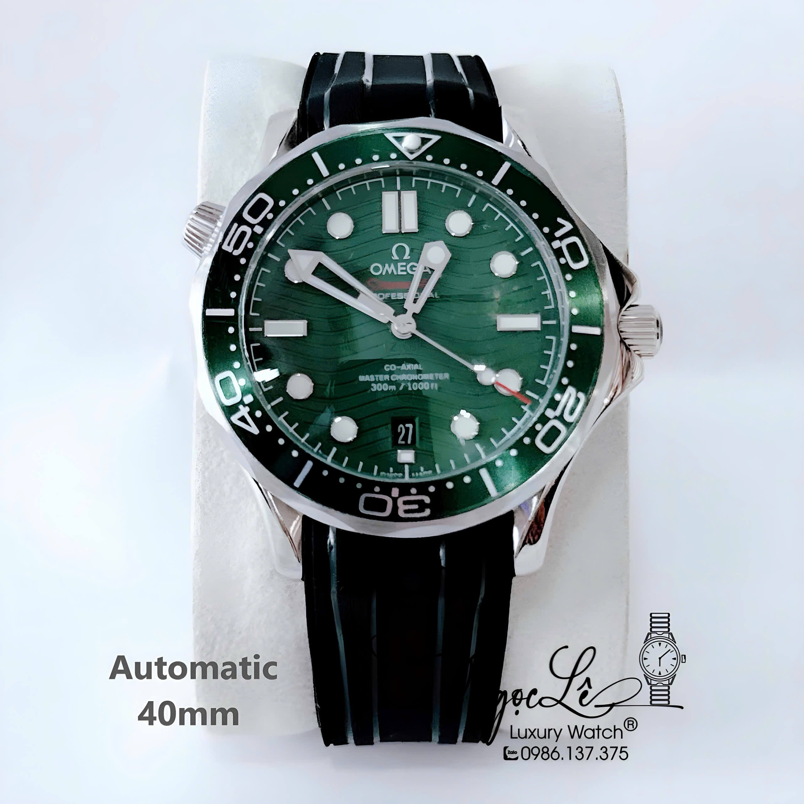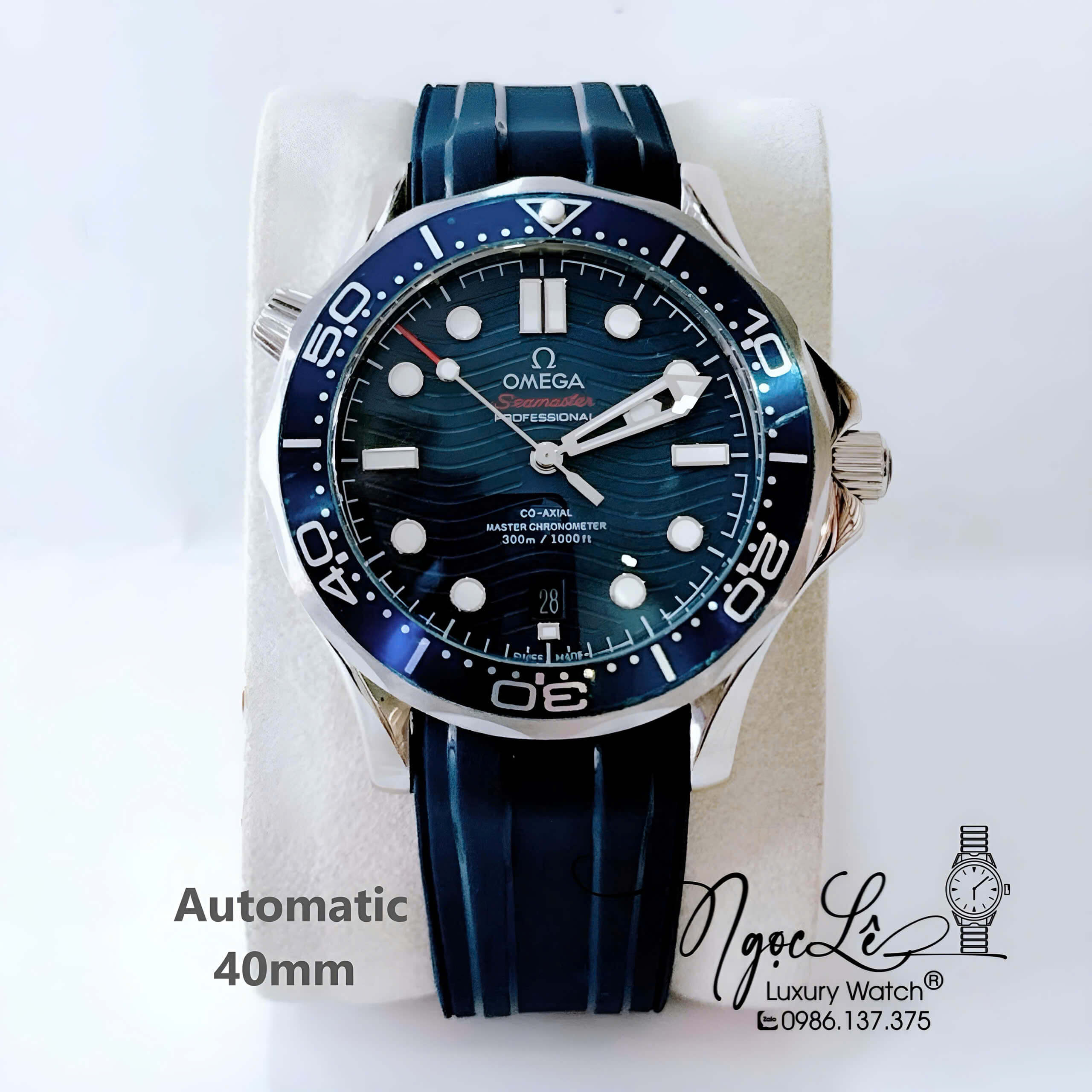 Đồng Hồ Nam Omega Seamaster Diver Automatic Dây Cao Su Xanh Size 41mm - Vỏ Bạc Mặt Xanh