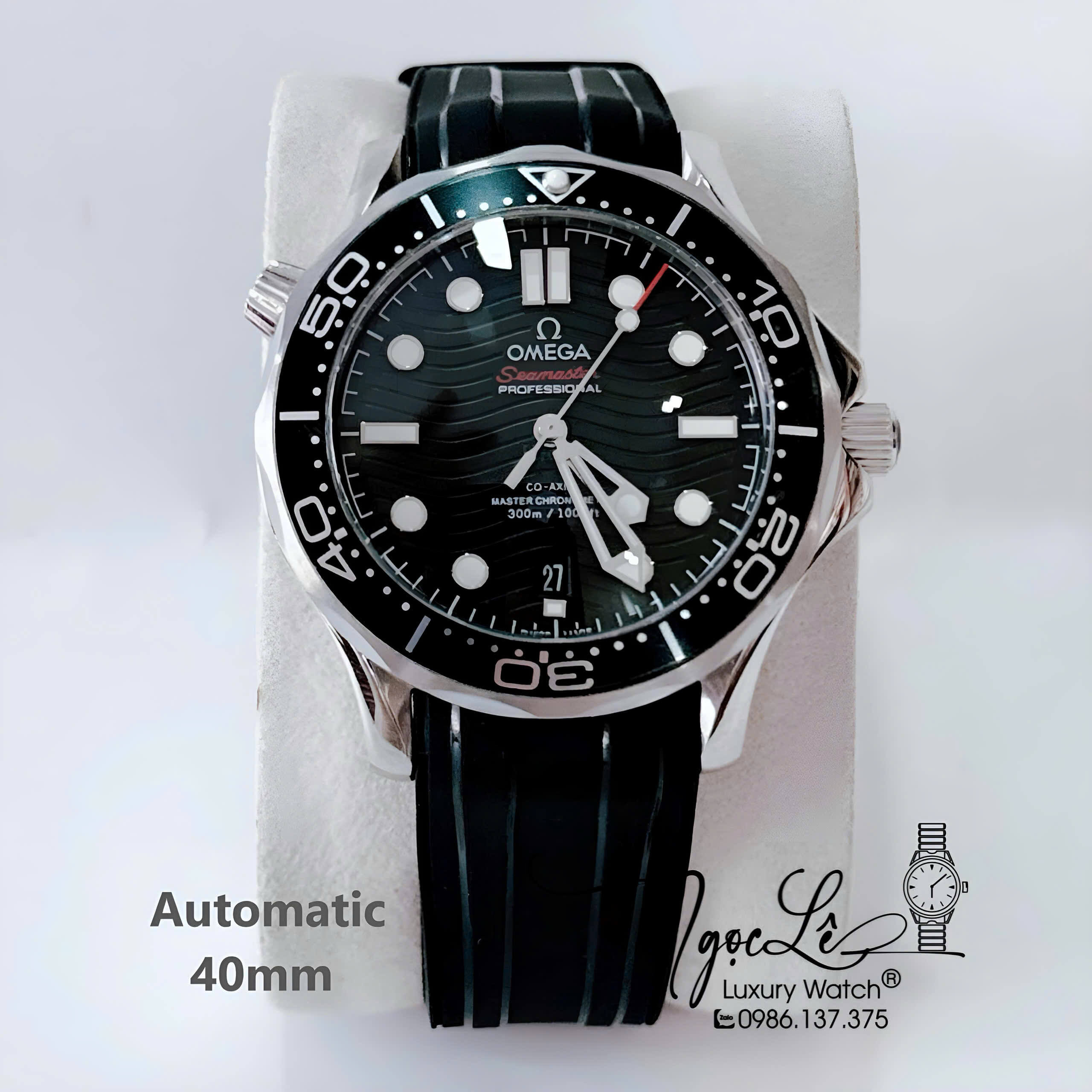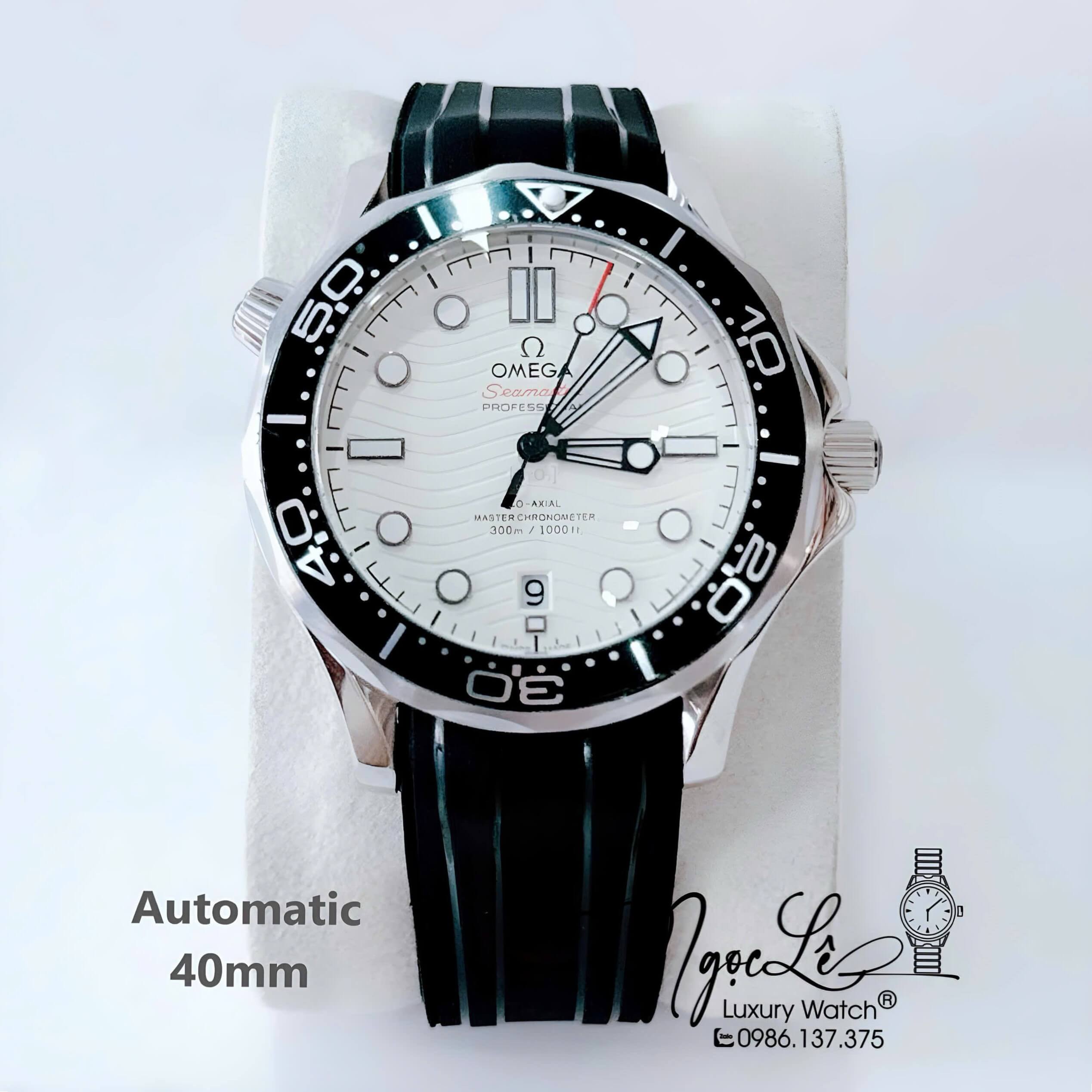 Đồng Hồ Nam Omega Seamaster Diver Automatic Dây Cao Su Đen Size 41mm - Vỏ Bạc Mặt Đen