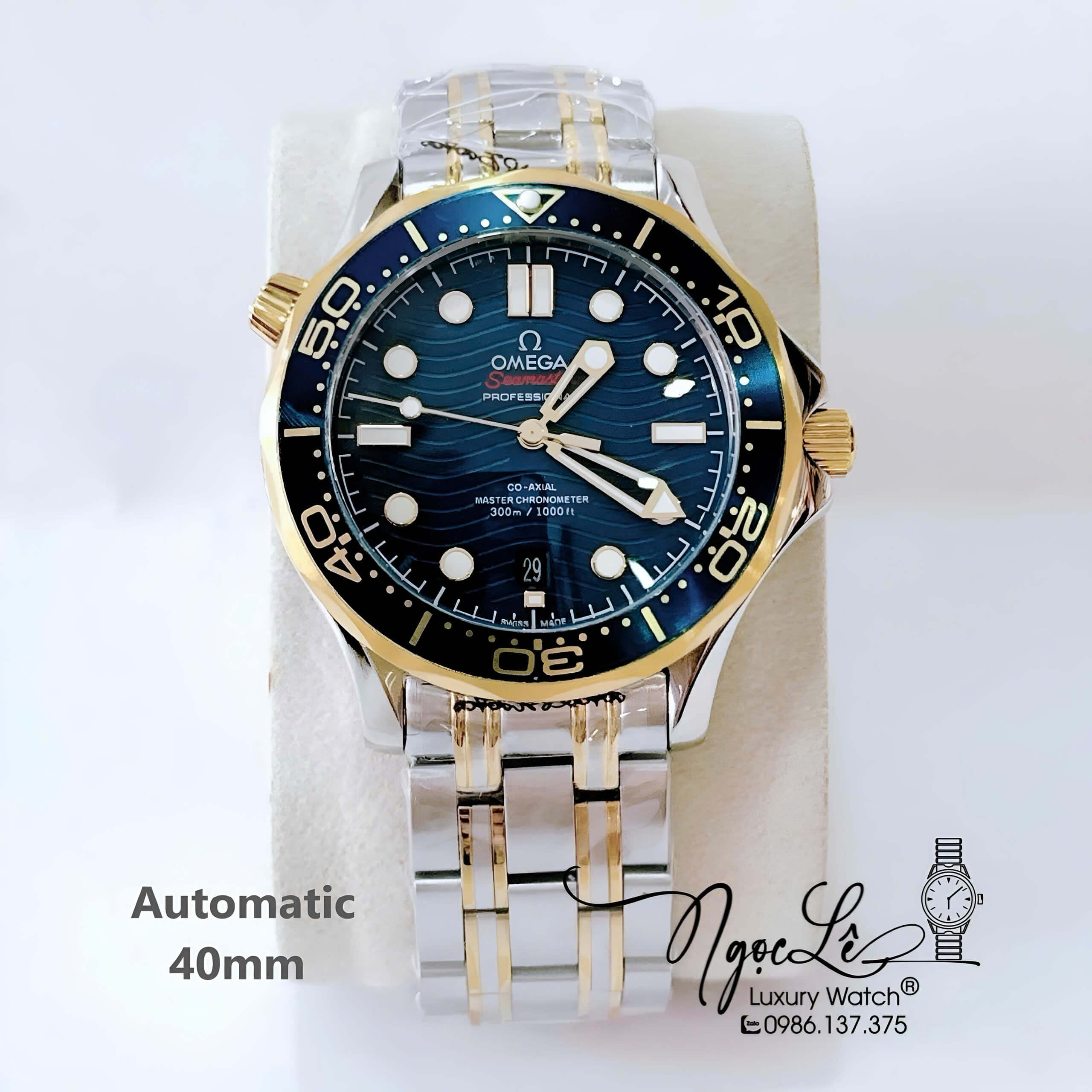 Đồng Hồ Nam Omega Seamaster Diver Automatic Dây Kim Loại Demi Vàng Size 41mm - Mặt Xanh