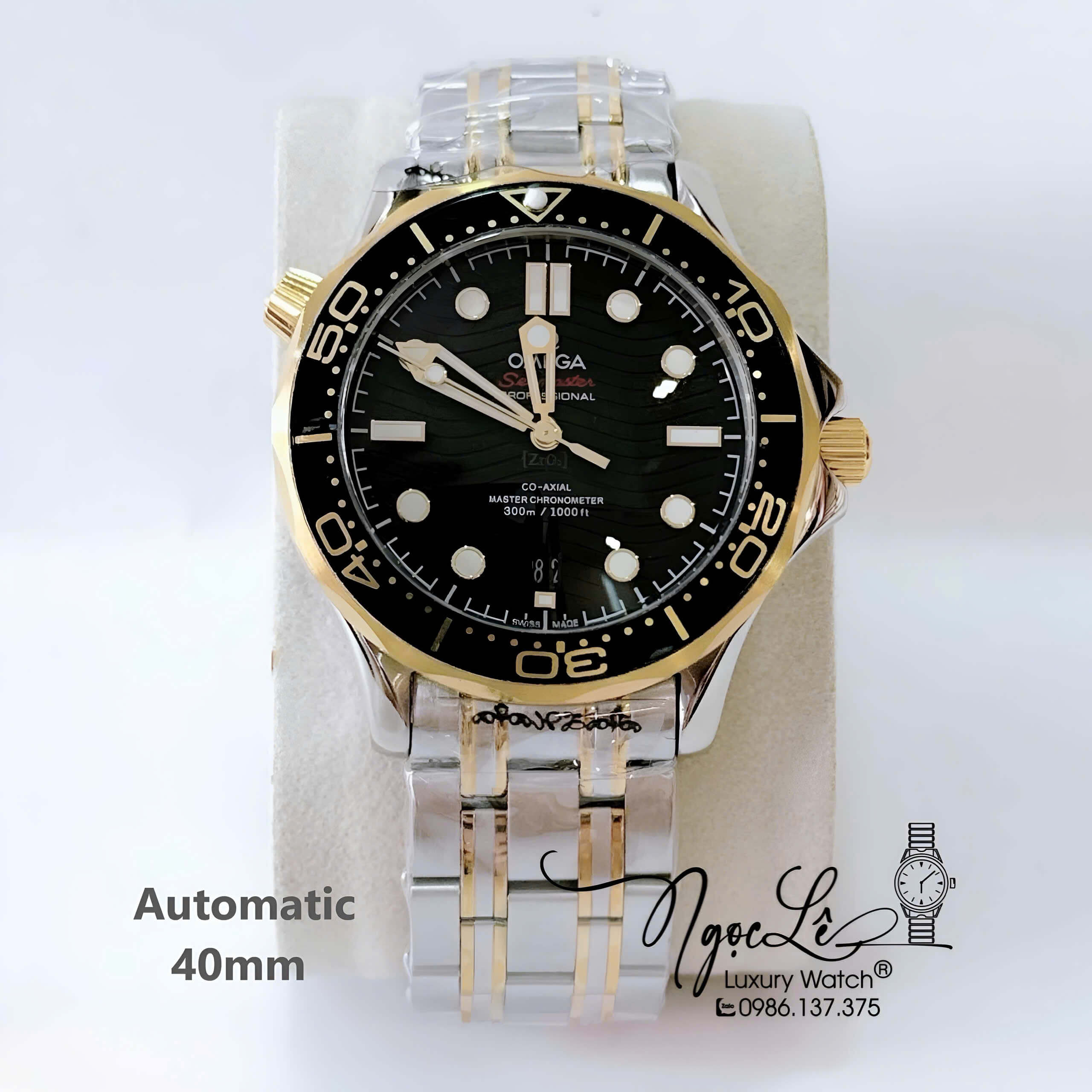 Đồng Hồ Nam Omega Seamaster Diver Automatic Dây Kim Loại Demi Vàng Size 41mm - Mặt Đen