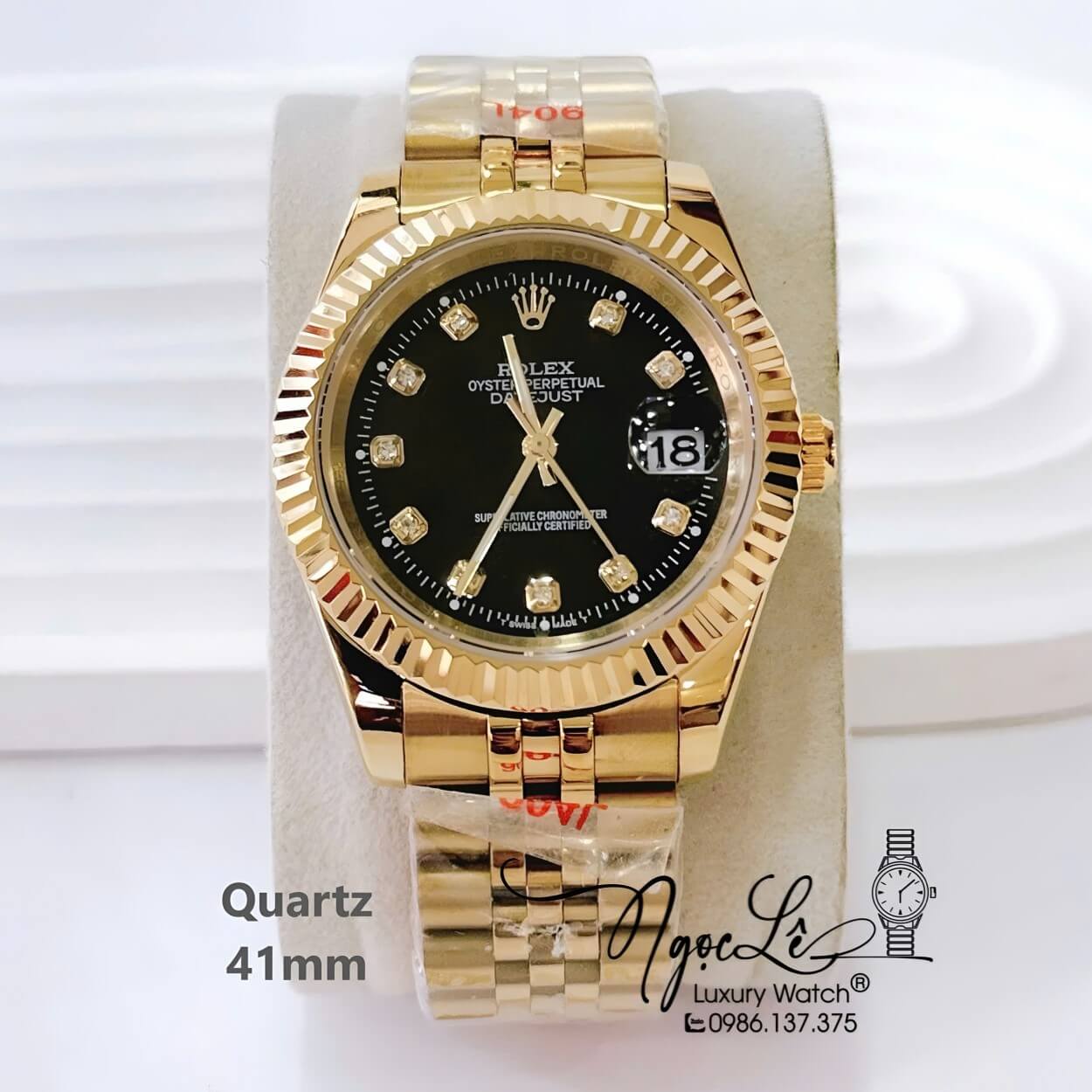 Đồng Hồ Nam Rolex Datejust Dây Kim Loại Vàng Mặt Đen Size 41mm Máy Pin
