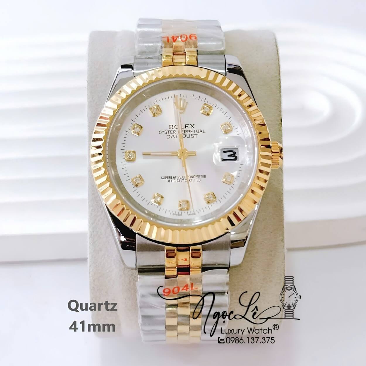 Đồng Hồ Nam Rolex Datejust Dây Kim Loại Demi Vàng Mặt Trắng Size 41mm Máy Pin
