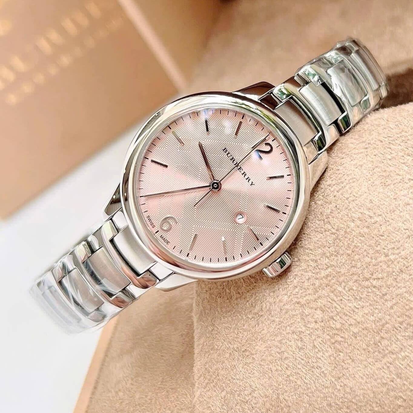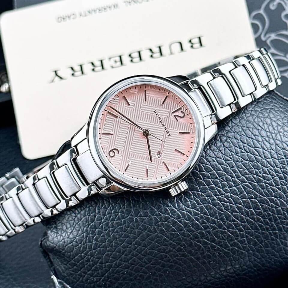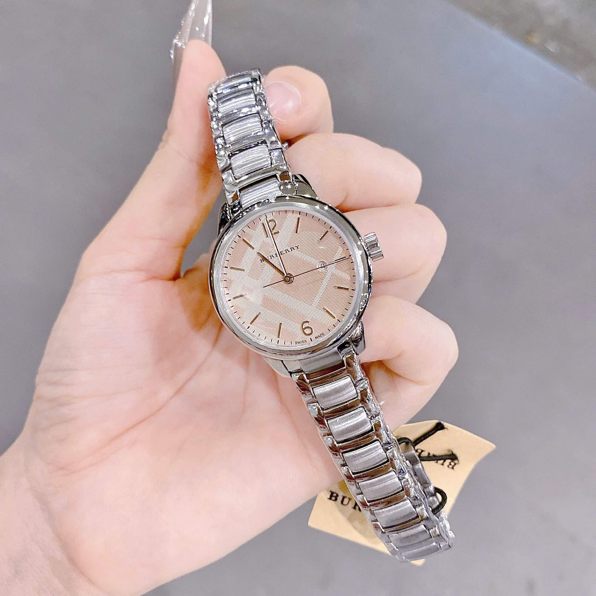 Hình ảnh Đồng Hồ Burberry BU10111 Máy Thụy Sĩ Size 32mm - Dây Silver Mặt Hồng Cam Sữa Nhạt