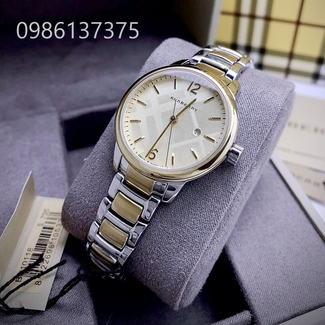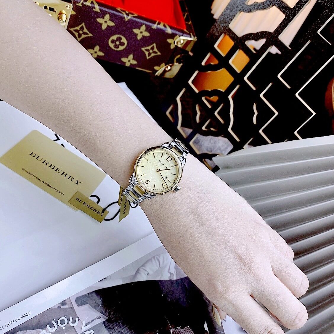 Màu mặt: Vàng ánh kim với họa tiết sọc Burberry