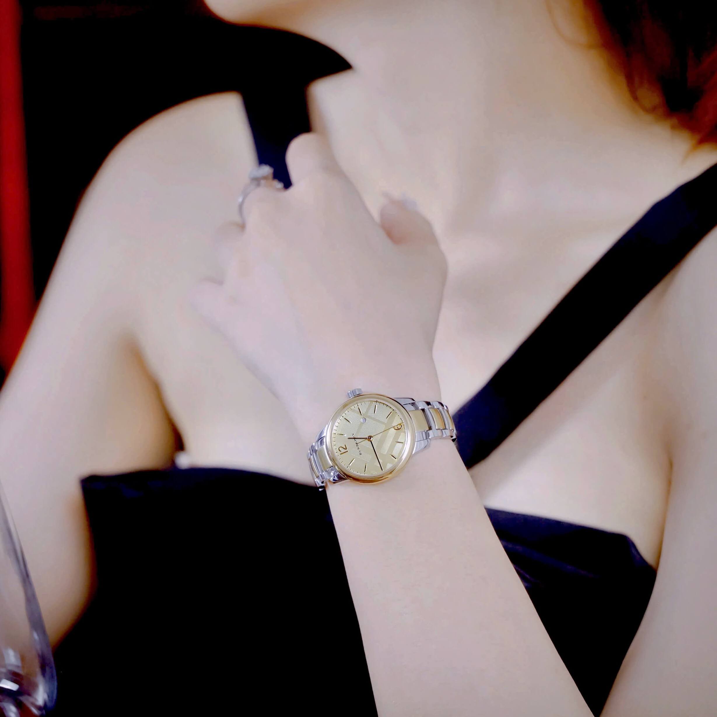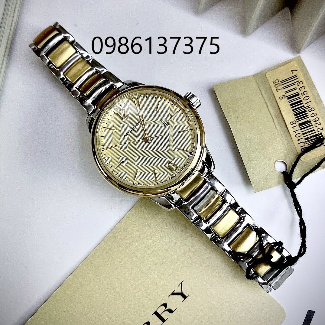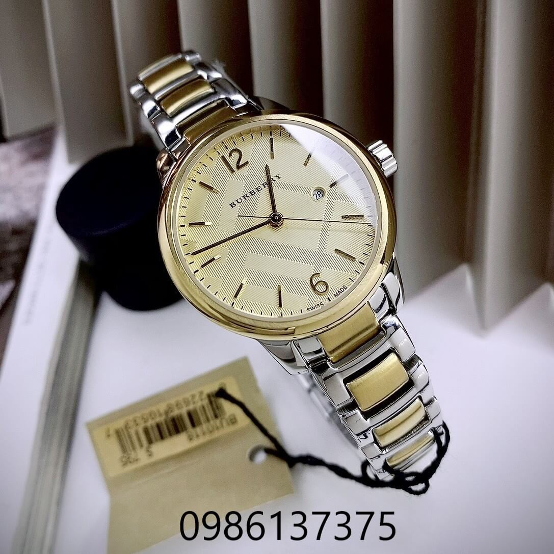 Đồng Hồ Nữ Burberry BU10118 Máy Thụy Sĩ Size 32mm - Dây Demi Vàng Mặt Vàng thiết kế demi vàng bạc – hài hòa, sang trọng, dễ phối đồ.