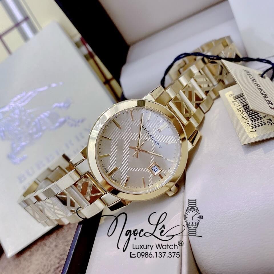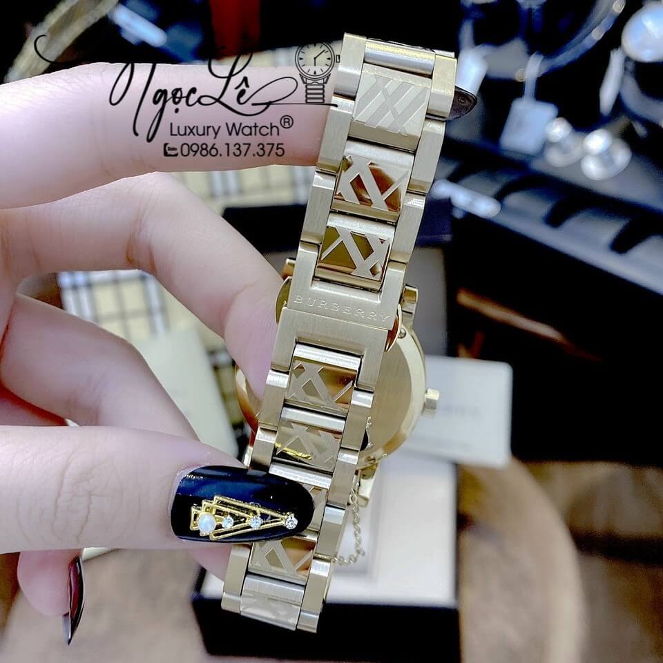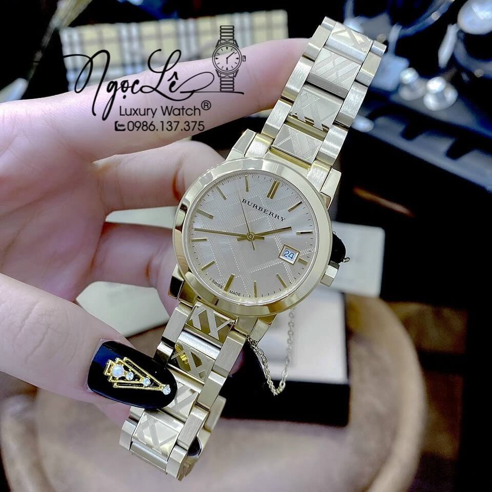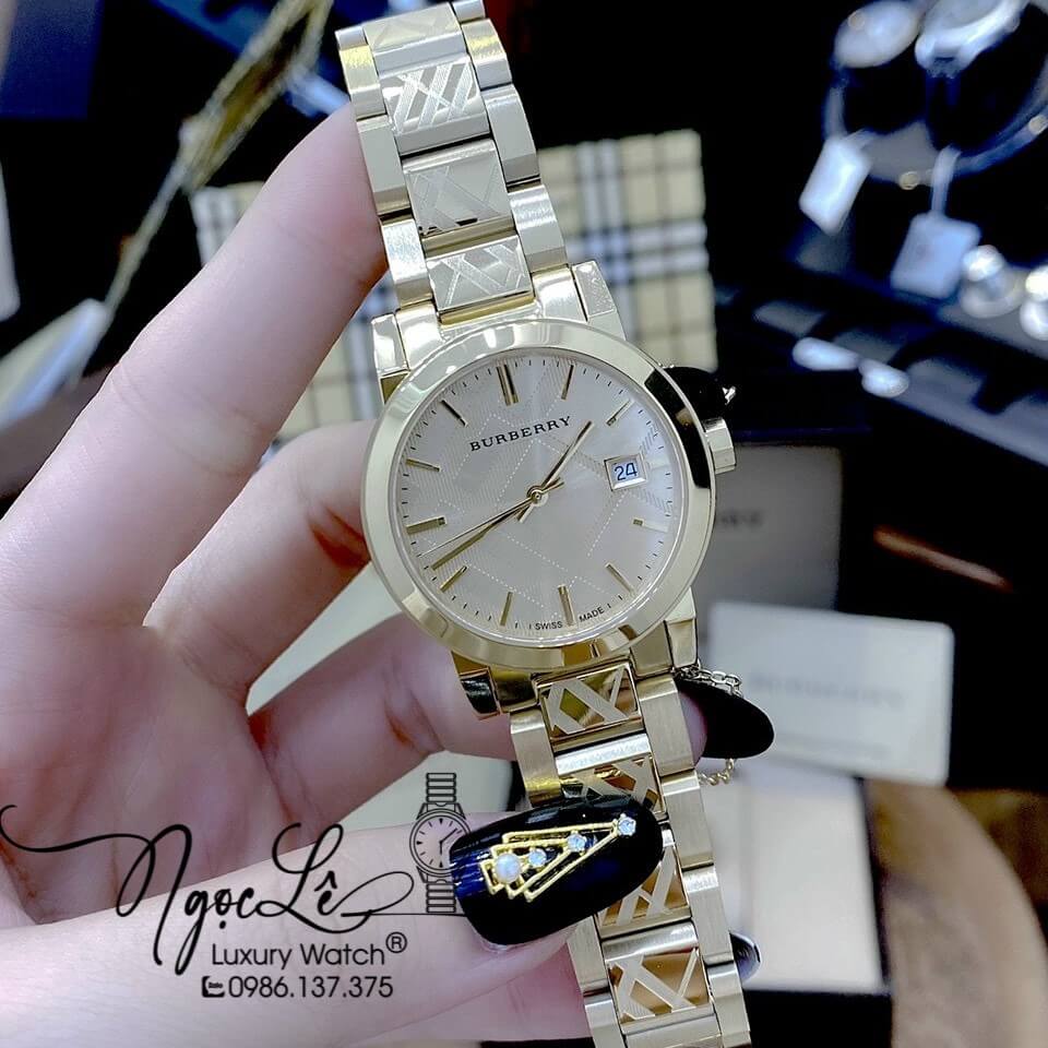 Đồng hồ Burberry nữ màu vàng gold size 34mm mày Thụy Sĩ, Burberry nữ bán chạy nhất