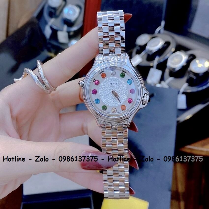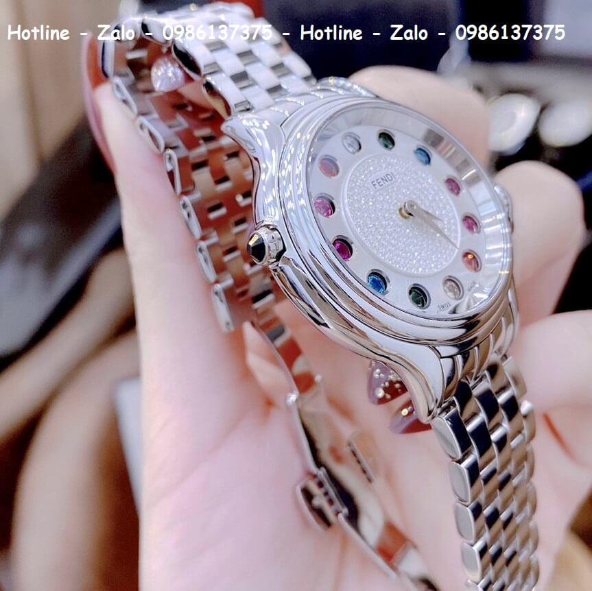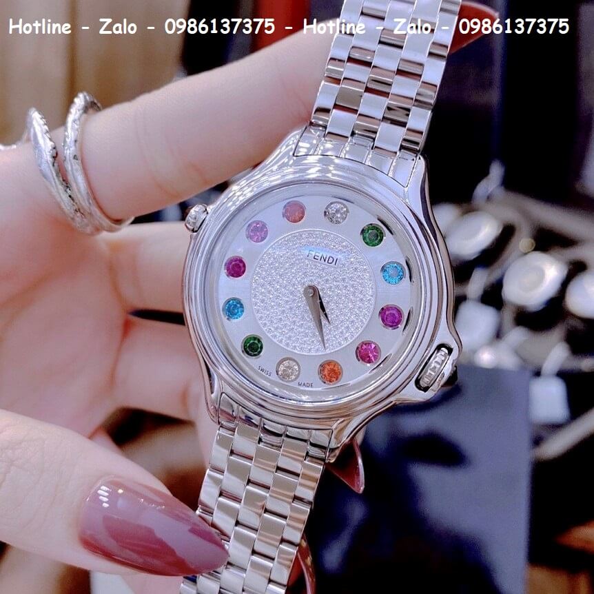 Fendi Crazy Carats Nữ Dây Bạc Đính Đá 35mm, với chức năng chuyển màu các viên đá quý