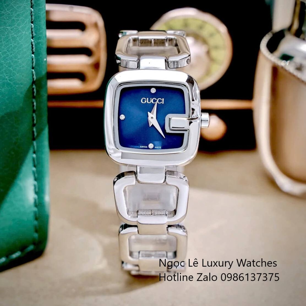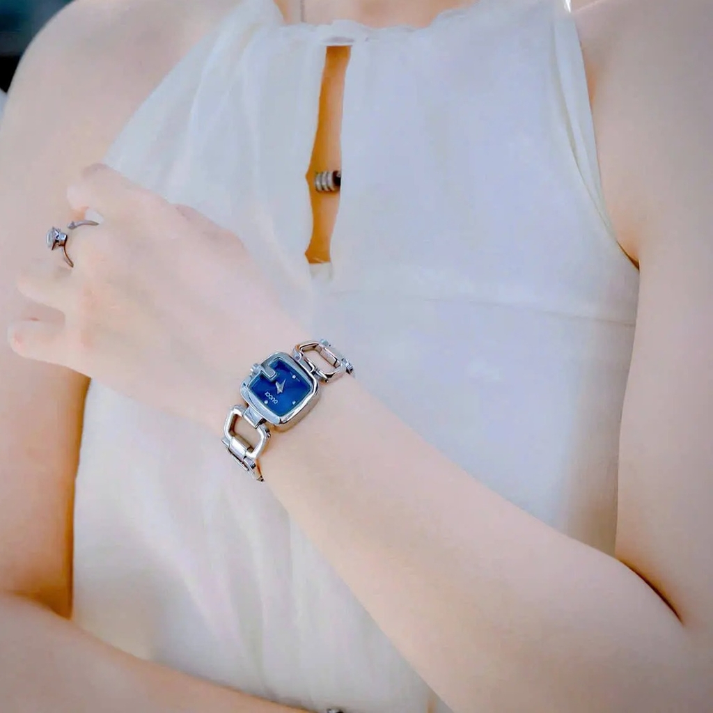 Đồng hồ Gucci nữ dây lắc tay mặt chữ G, đồng hồ nữ mặt màu xanh dương