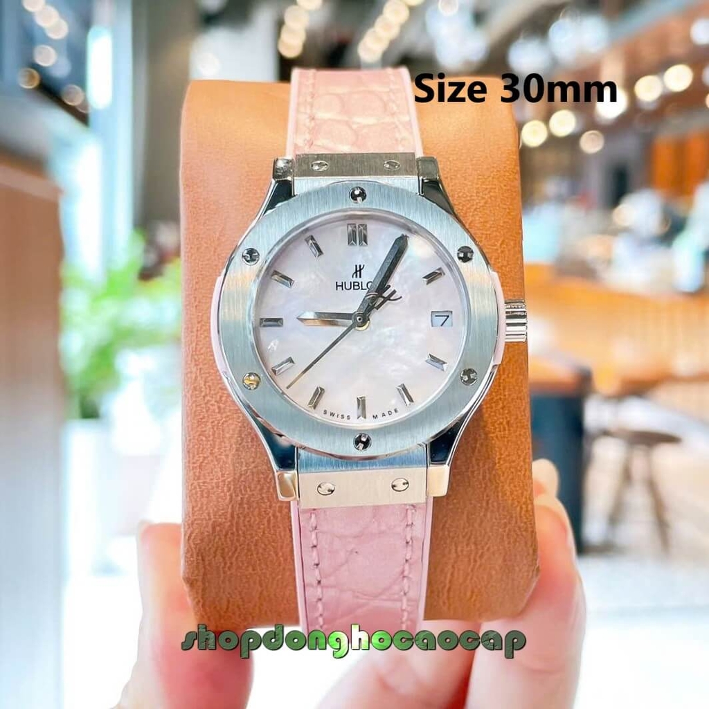 Đồng Hồ Nữ Hublot Classic Fusion Dây Cao Su Hồng Pastel Viền Trơn Size 30mm – Máy Pin Miyota Nhật, Vỏ Silver