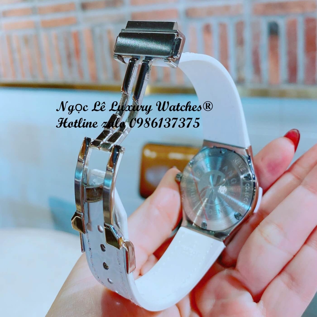 Sự kết hợp giữa tone trắng nhẹ nhàng cùng viền đính đá lấp lánh giúp tạo nên vẻ ngoài sang trọng nhưng vẫn rất dễ đeo hằng ngày.
