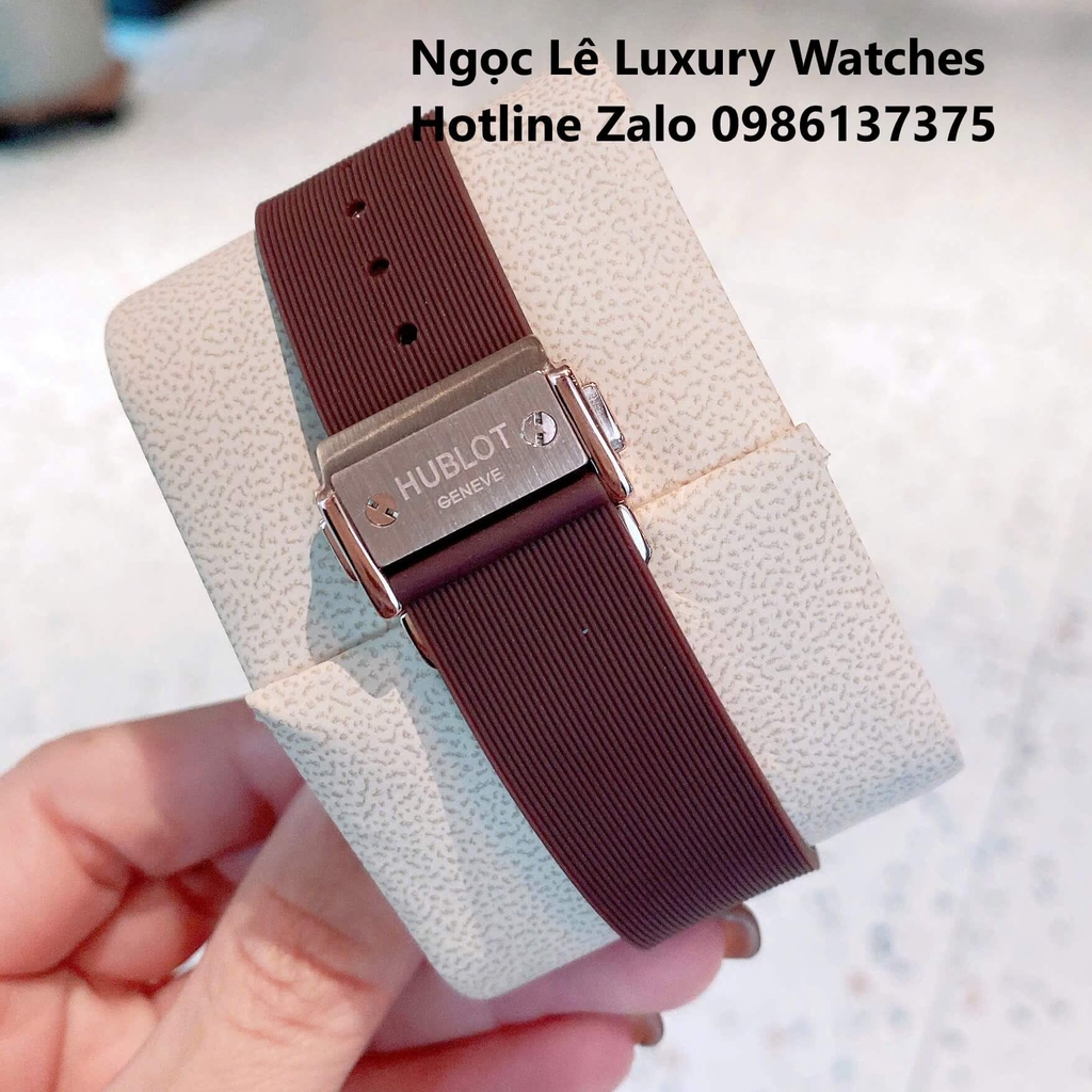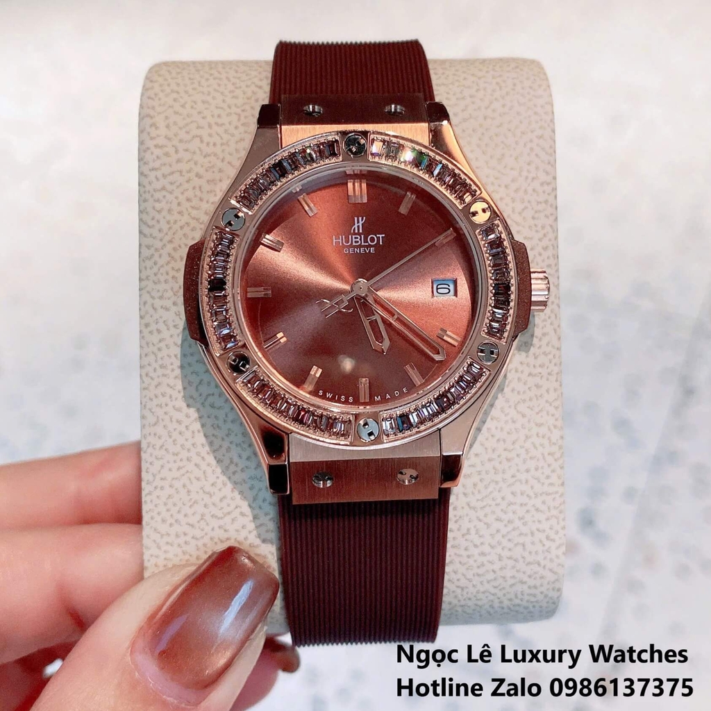 Đồng hồ Hublot nữ màu nâu socola sang trọng, đồng hồ Hublot đính đá cá tính, kiểu dáng trẻ trung