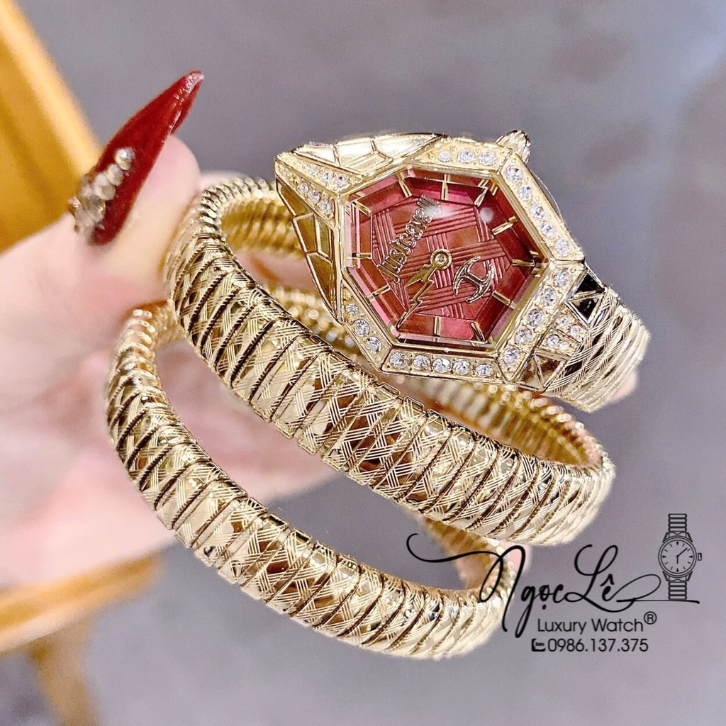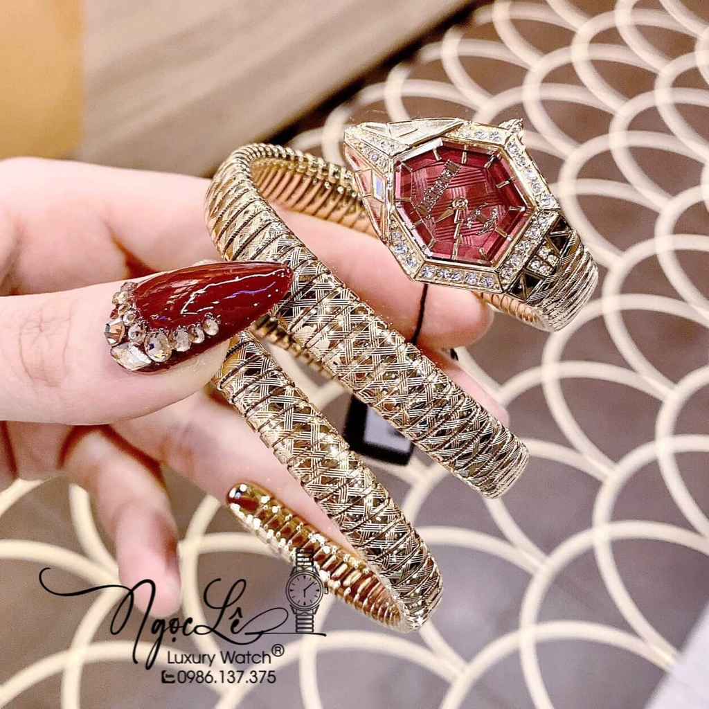 - Đồng Hồ Nữ Just Cavalli Rắn Quấn Vòng Màu Vàng Gold Mặt Đỏ Lì Size 23mm