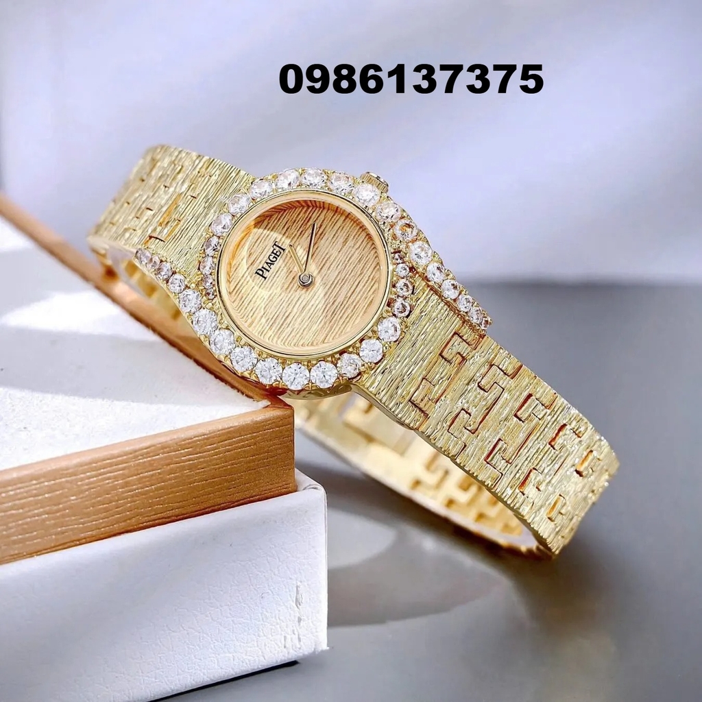Đồng Hồ Nữ Piaget Dây Kim Loại Mesh Vàng Mặt Vàng Viền Đá Size 26mm – Máy Pin