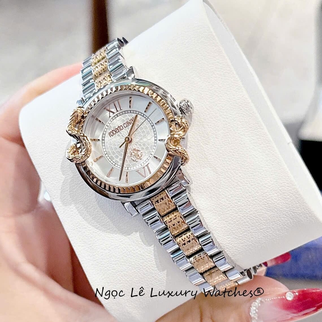 Đồng Hồ Nữ Roberto Cavalli Dây Kim Loại Demi Vàng Hồng Mặt Rắn Size 32mm - Quartz