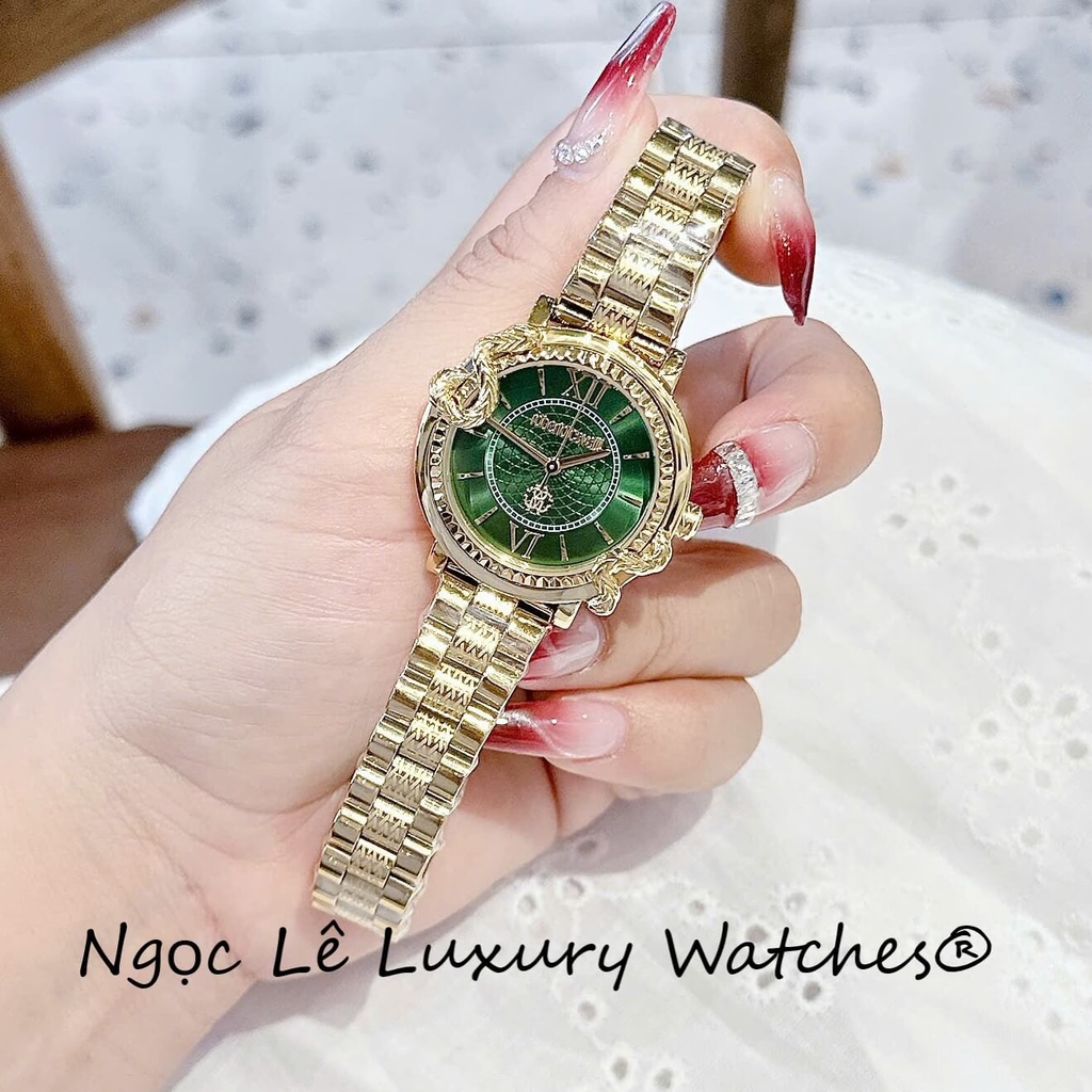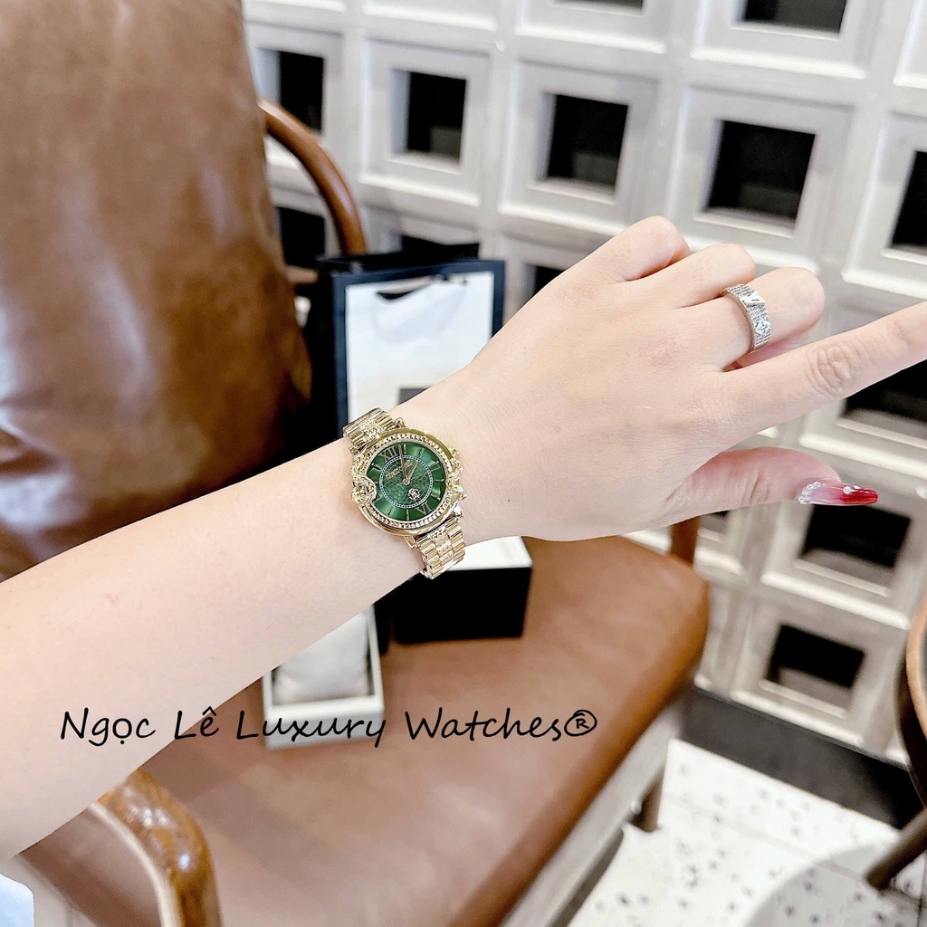 Đồng Hồ Nữ Roberto Cavalli Dây Kim Loại Màu Vàng Gold Mặt Rắn Xanh Lá Size 32mm - Quartz