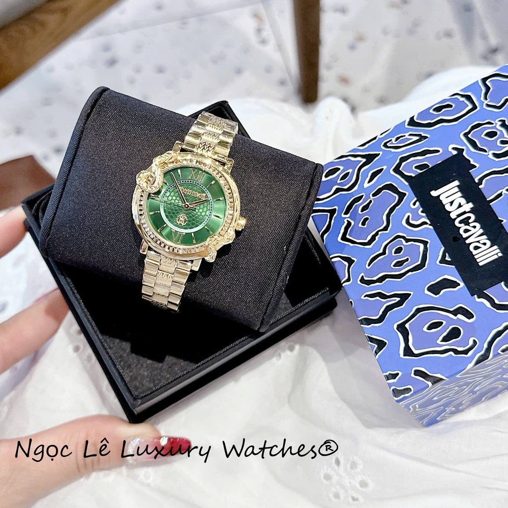 Hình ảnh chi tiết hơn về Đồng Hồ Roberto Cavalli Nữ Mặt Rắn Size 32mm, màu vàng mặt xanh lá sang trọng