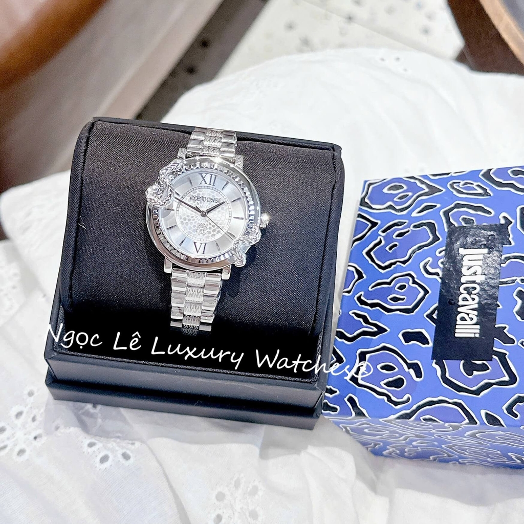 Đồng Hồ Nữ Roberto Cavalli Dây Thép Bạc Mặt Trắng Họa Tiết Rắn Size 32mm - Quartz