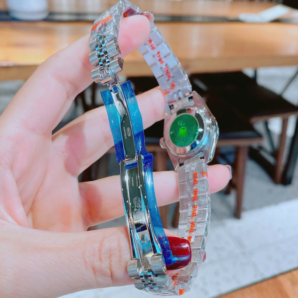 Đồng Hồ Nữ RoLex Datejust Máy Pin Size 28mm – Dây Bạc Mặt Đen Viền Đính Đá