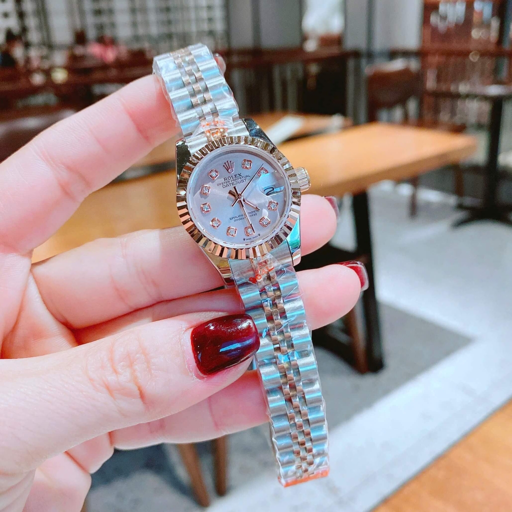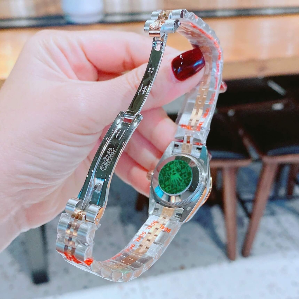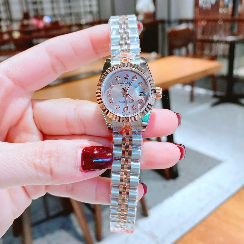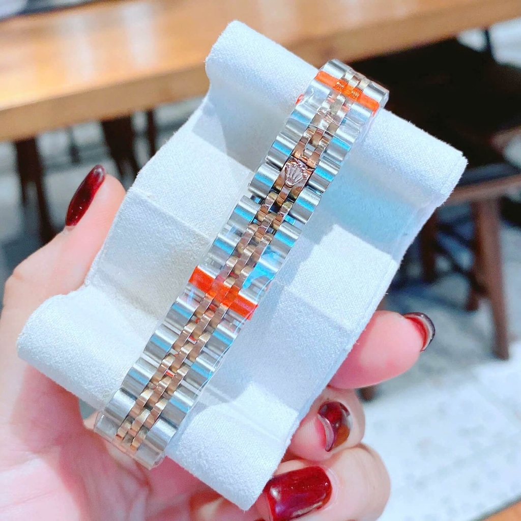Đồng Hồ Nữ RoLex Datejust 28mm phiên bản demi rose kết hợp mặt vàng hồng mang đến vẻ đẹp nữ tính, sang trọng và vô cùng thời thượng. Tông vàng hồng dịu nhẹ tạo cảm giác thanh lịch, bắt sáng tốt và phù hợp với nhiều tone da. Thiết kế mặt 28mm nhỏ gọn ôm tay, dễ đeo và dễ phối với trang phục đi làm – đi chơi – dự tiệc.