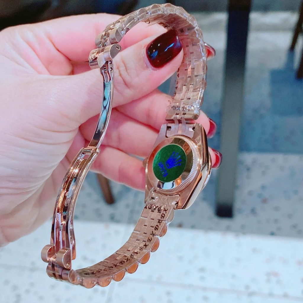 Hình ảnh Đồng Hồ Nữ RoLex Datejust Máy Pin Size 28mm – Vàng Hồng Mặt Trắng Xà Cừ Viền Đá