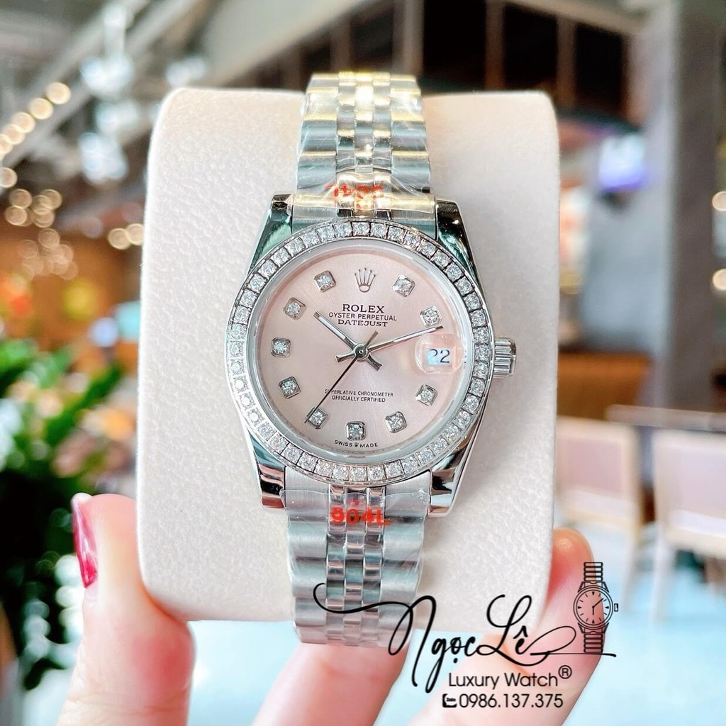Đồng Hồ Nữ Rolex Datejust Quartz Dây Bạc Mặt Hồng Size 31mm Đính Đá - Kính Sapphire