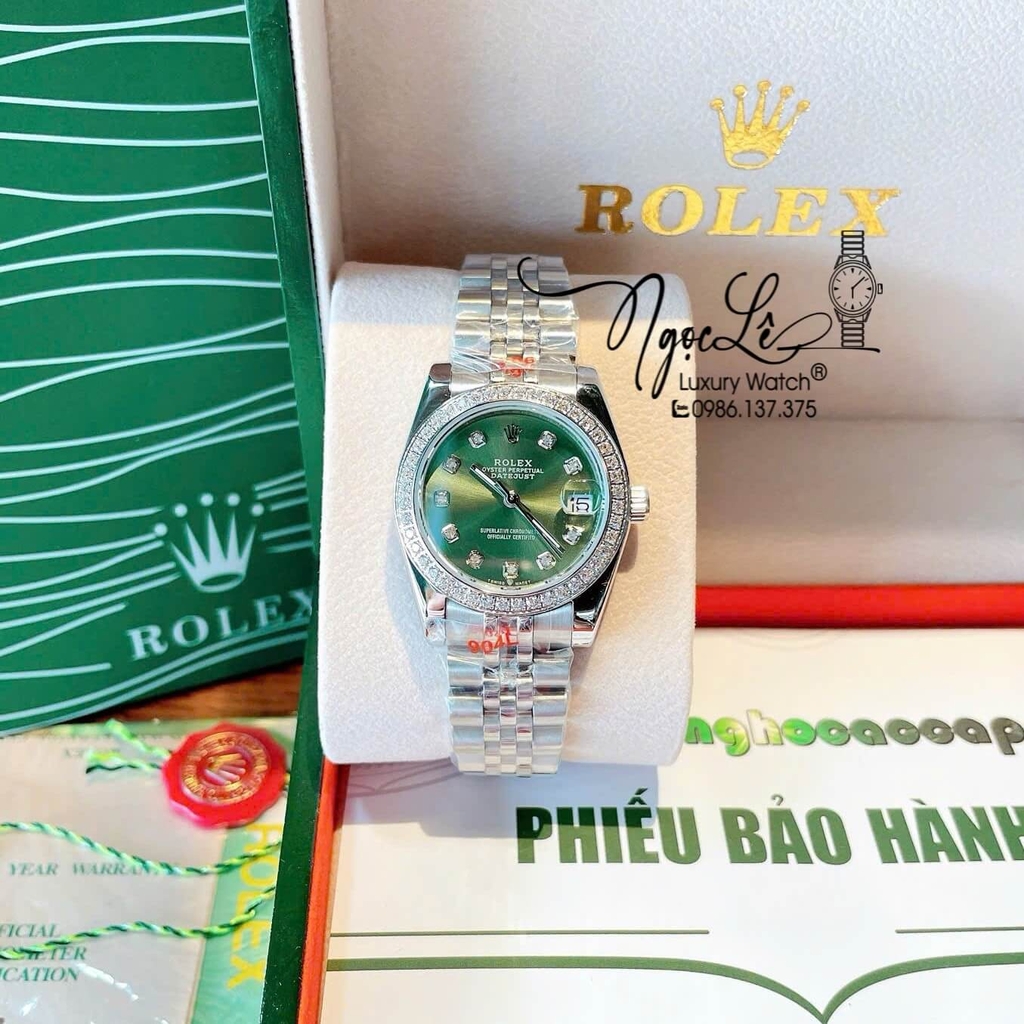 Đồng Hồ Nữ Rolex Datejust Quartz Dây Bạc Mặt Xanh Oliu Size 31mm Đính Đá - Kính Sapphire