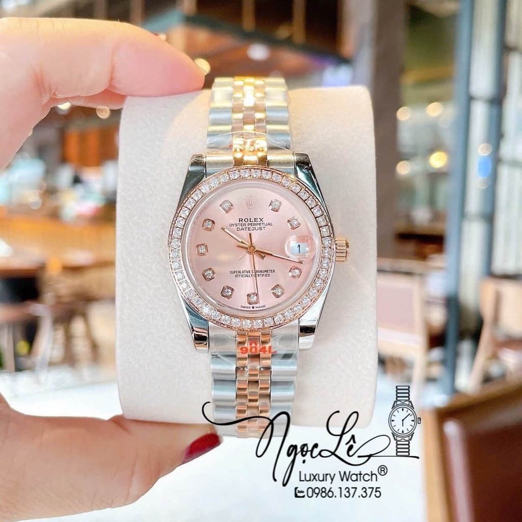 Đồng Hồ Nữ Rolex Datejust Quartz Dây Demi Vàng Hồng Size 31mm Đính Đá