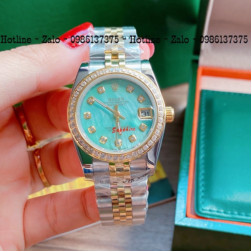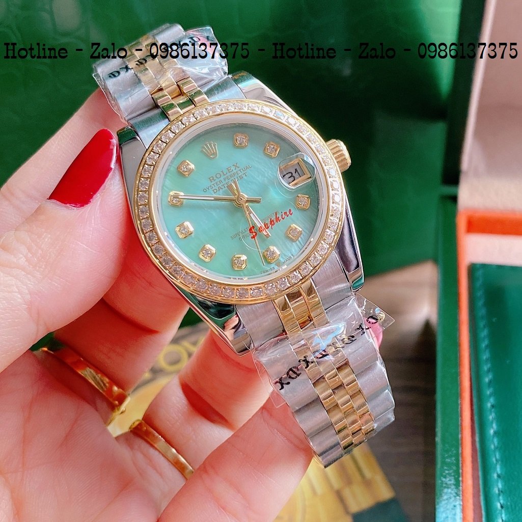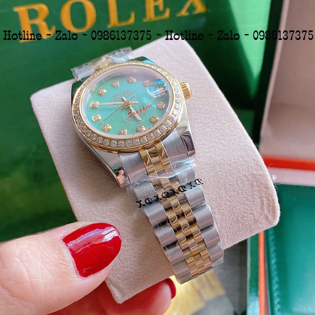 - Đồng Hồ Nữ Rolex Viền Đá Dây Demi Mặt Xanh Ngọc 32mm