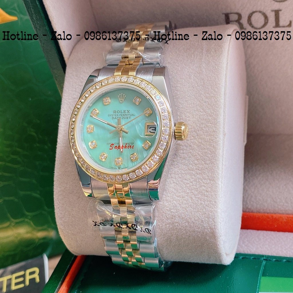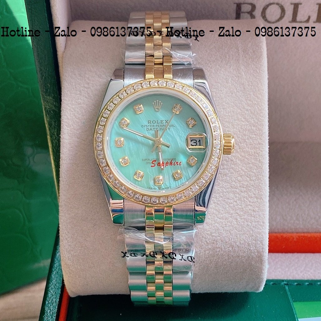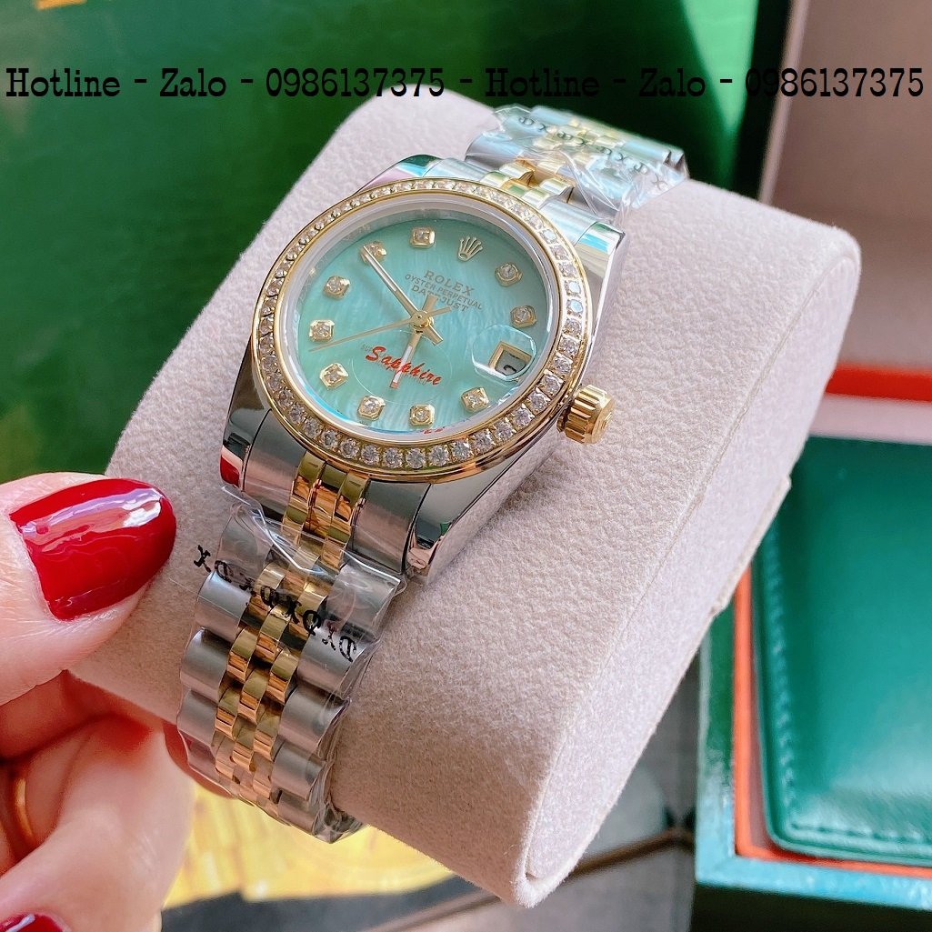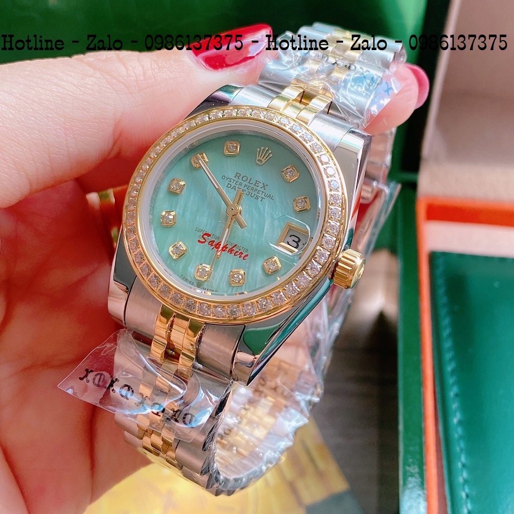 - Đồng Hồ Nữ Rolex Viền Đá Dây Demi Mặt Xanh Ngọc 32mm